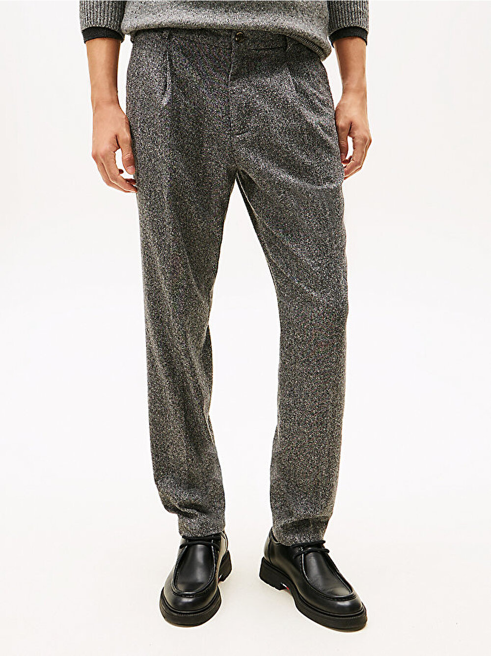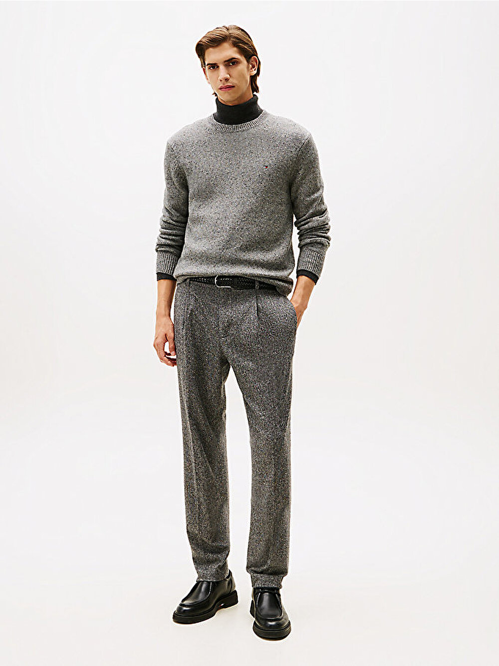 İpek dokunuşlu streç yünden üretilen bu tapered leg pantolonla Donegal kumaşının zamansız zarafetini kucaklayın.