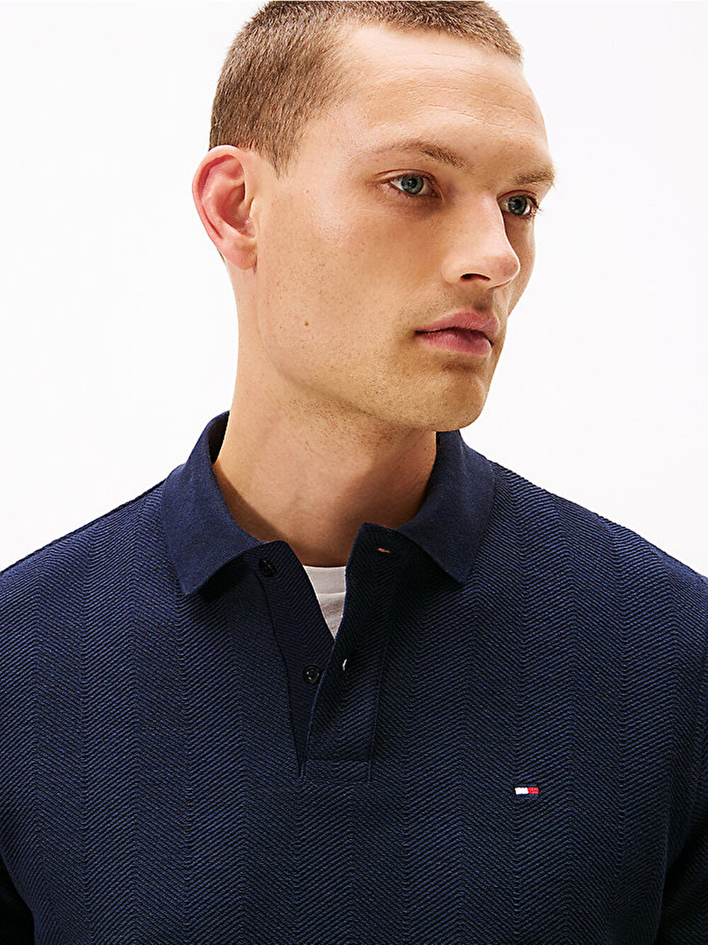 Polo tişört koleksiyonunuzu merserize pamuktan yapılmış, zarif balıksırtı jakarlı dokusuyla zengin görünüm sunan bu uzun kollu tasarımla zenginleştirin.