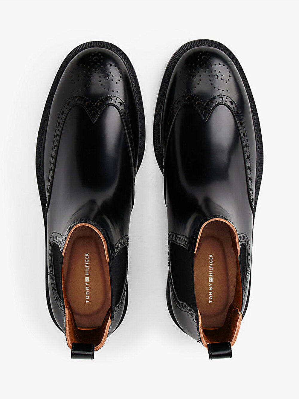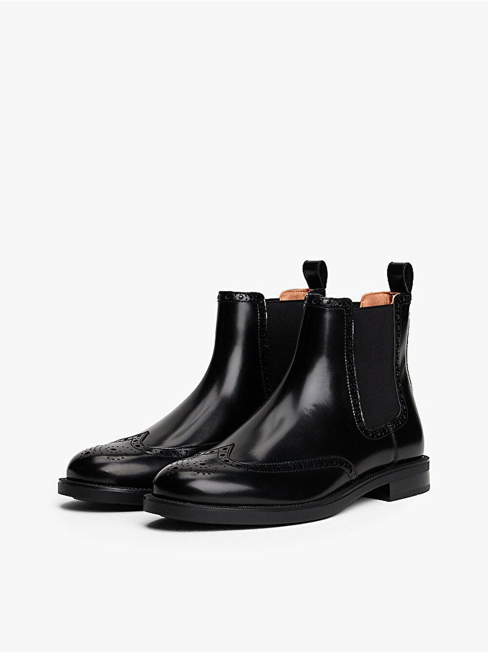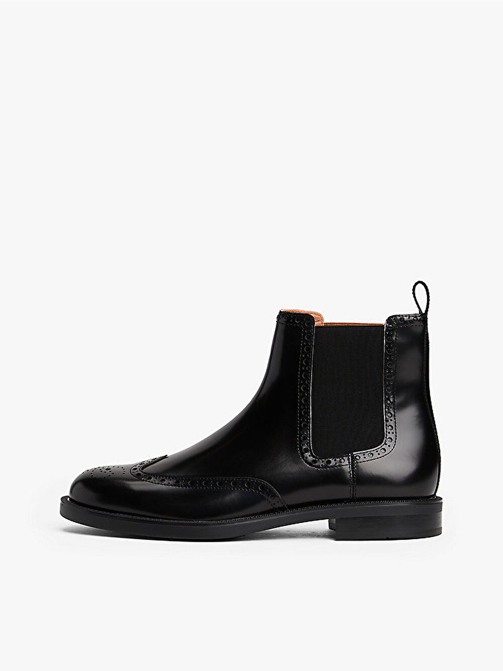 Otantik bir dokunuş için brogue detaylara sahip bu şık deri Chelsea botla soğuk hava görünümünüze zarafet katın.