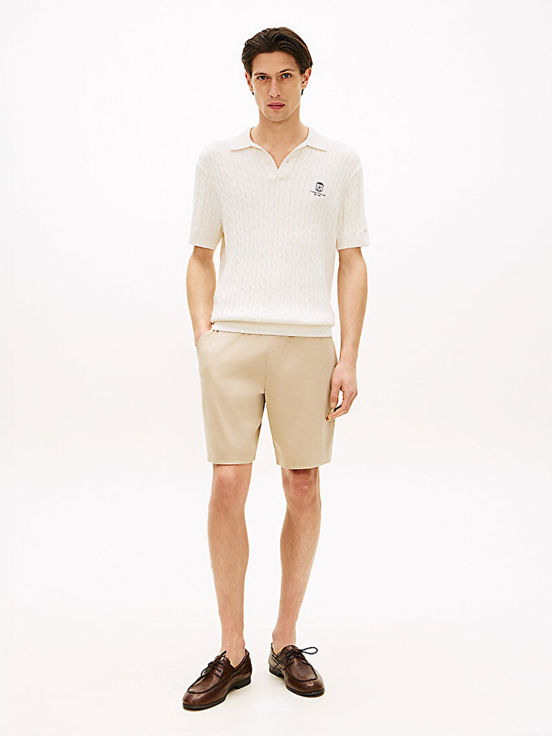 - Temel bir parçanın üst düzey yorumu olan bu sweat şort, interlok örgülü streç pamuktan regular fit kesimle üretilmiştir.
