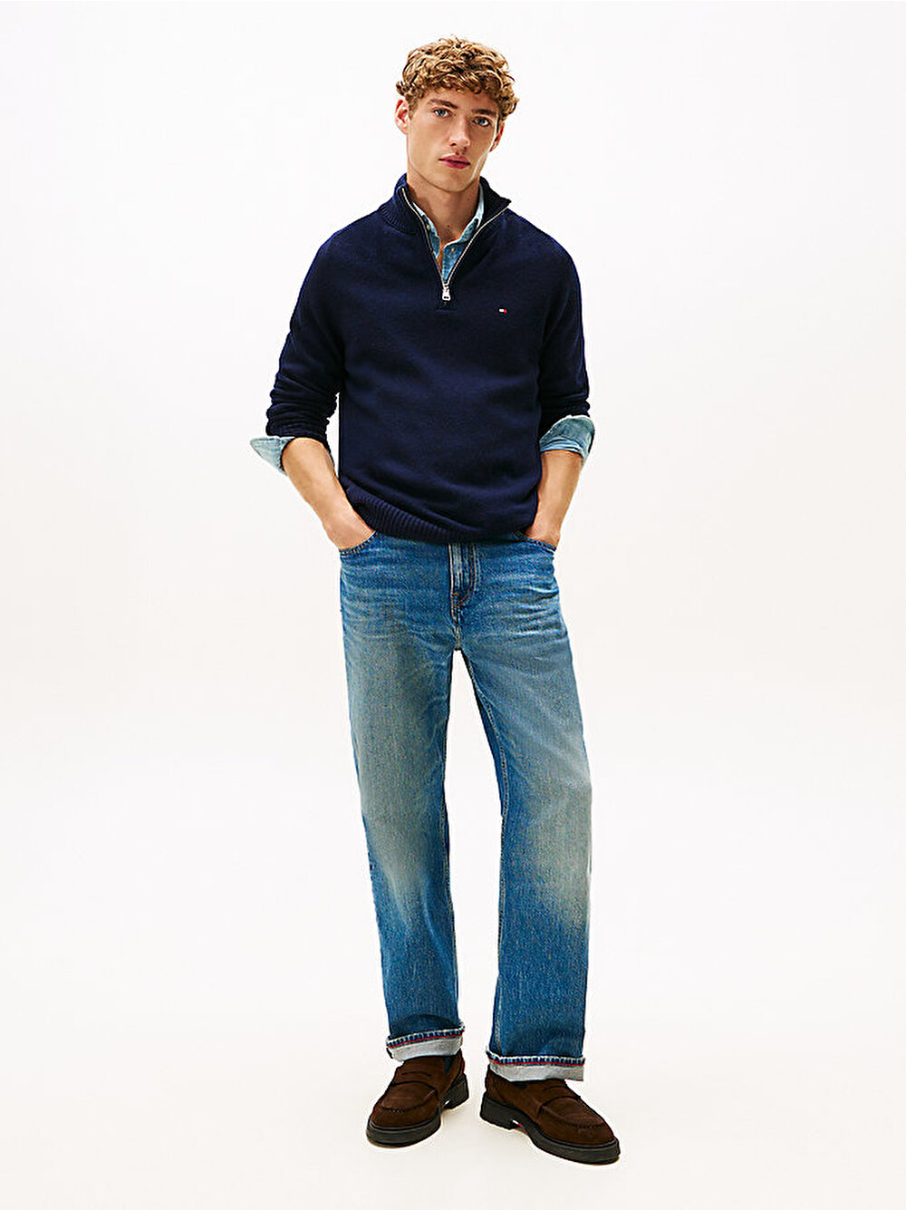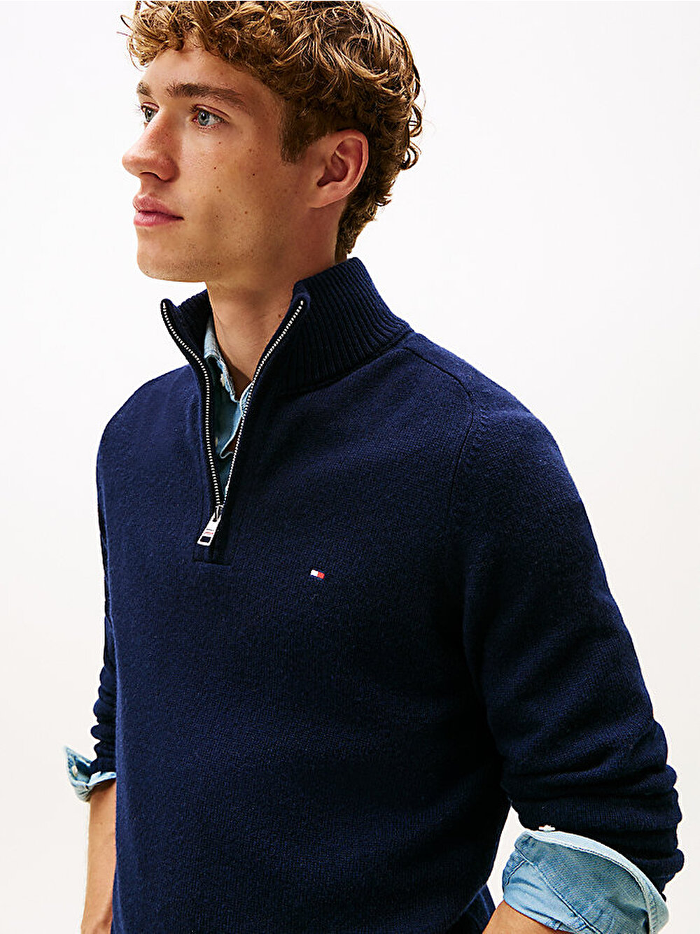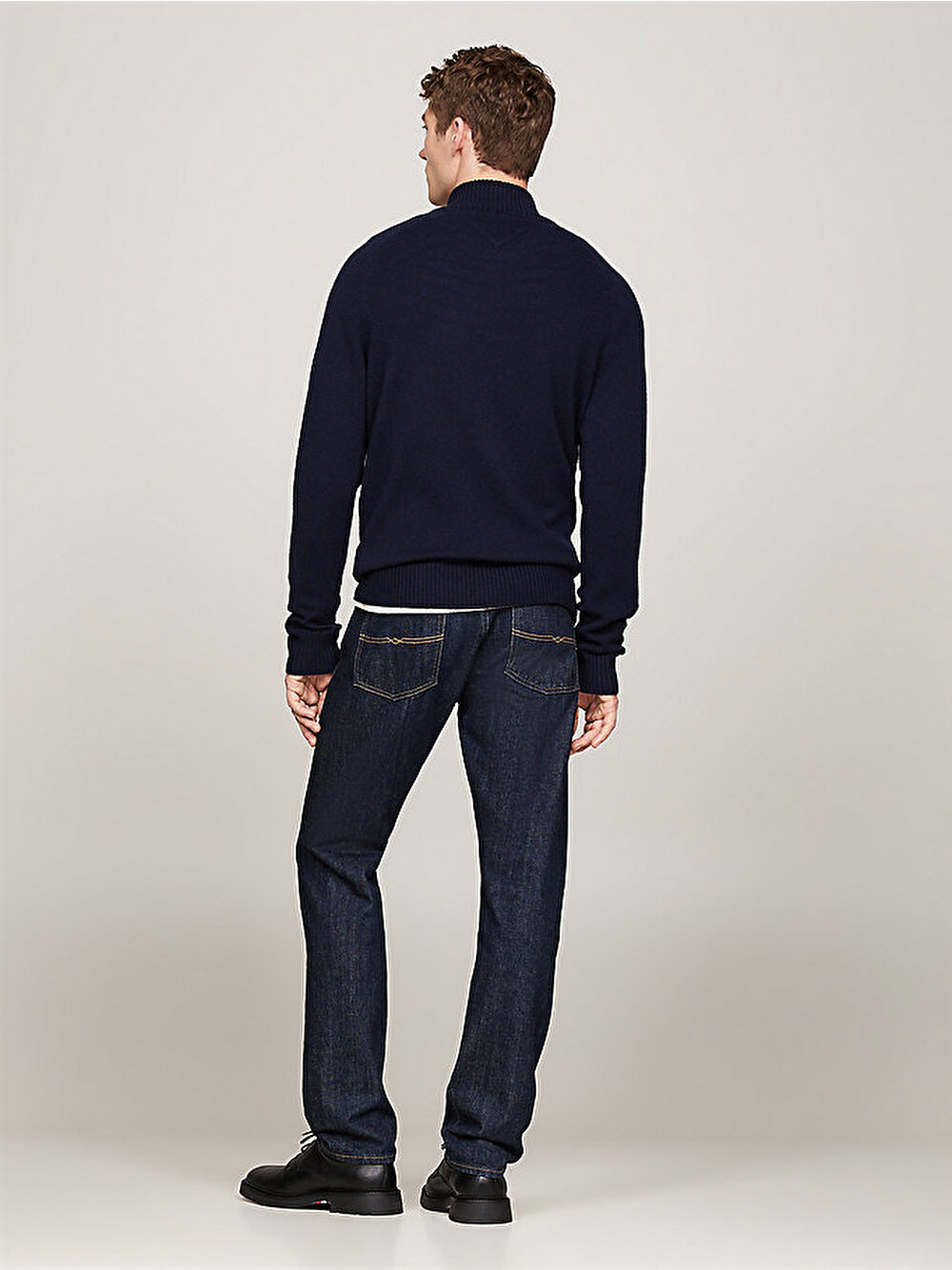 Saf kuzu yününden üretilen bu rahat kazak, farklı görünümler için stil seçenekleri sunan sofistike bir yarım fermuarlı tasarıma sahiptir.