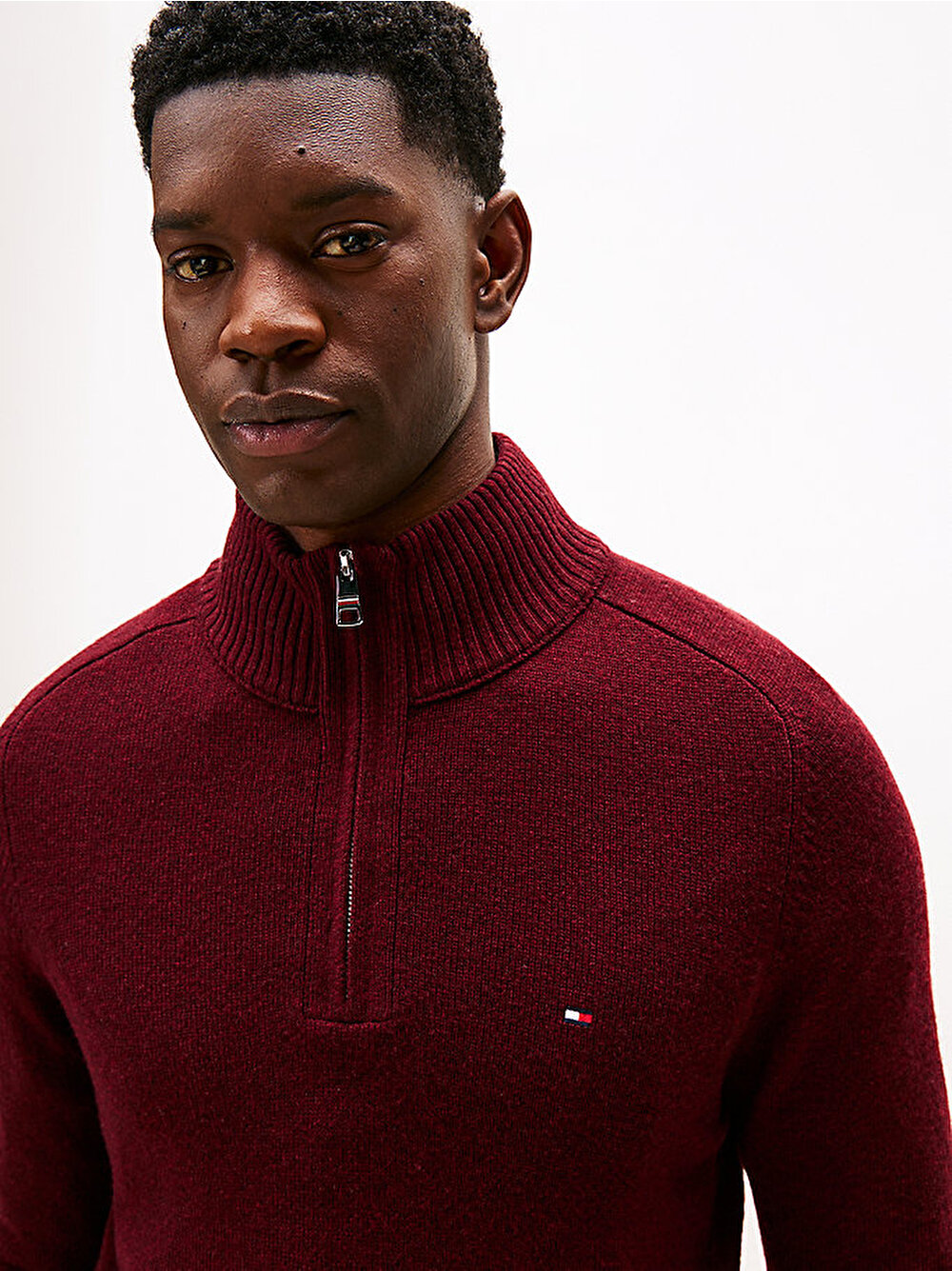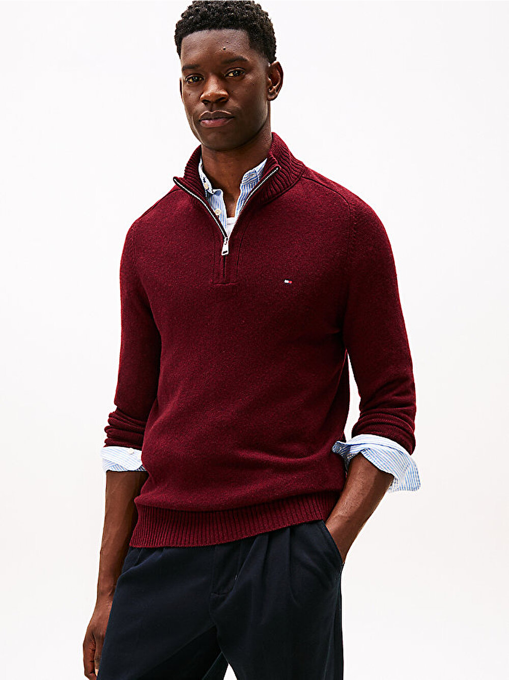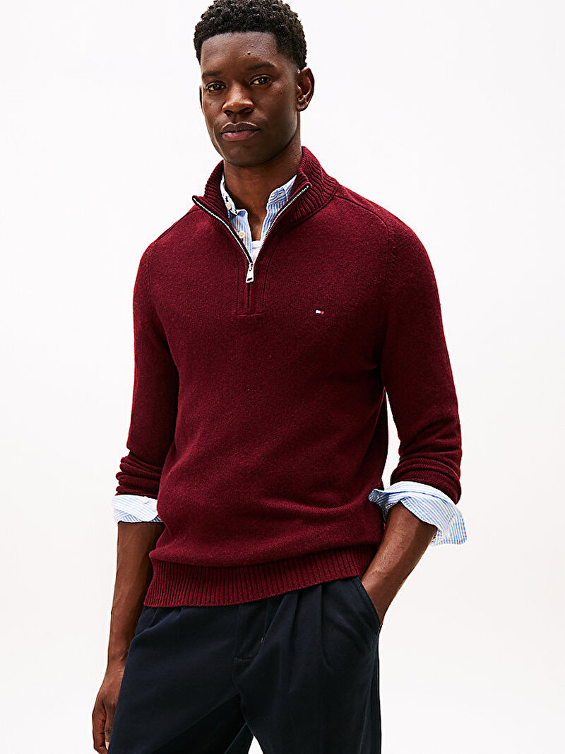 Saf kuzu yününden üretilen bu rahat kazak, farklı görünümler için stil seçenekleri sunan sofistike bir yarım fermuarlı tasarıma sahiptir.