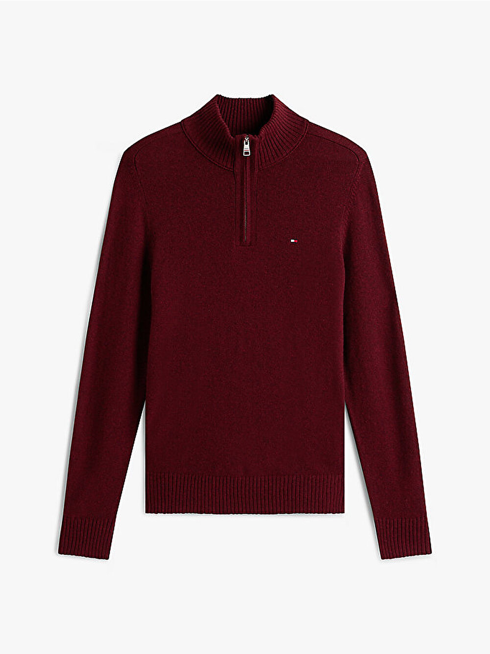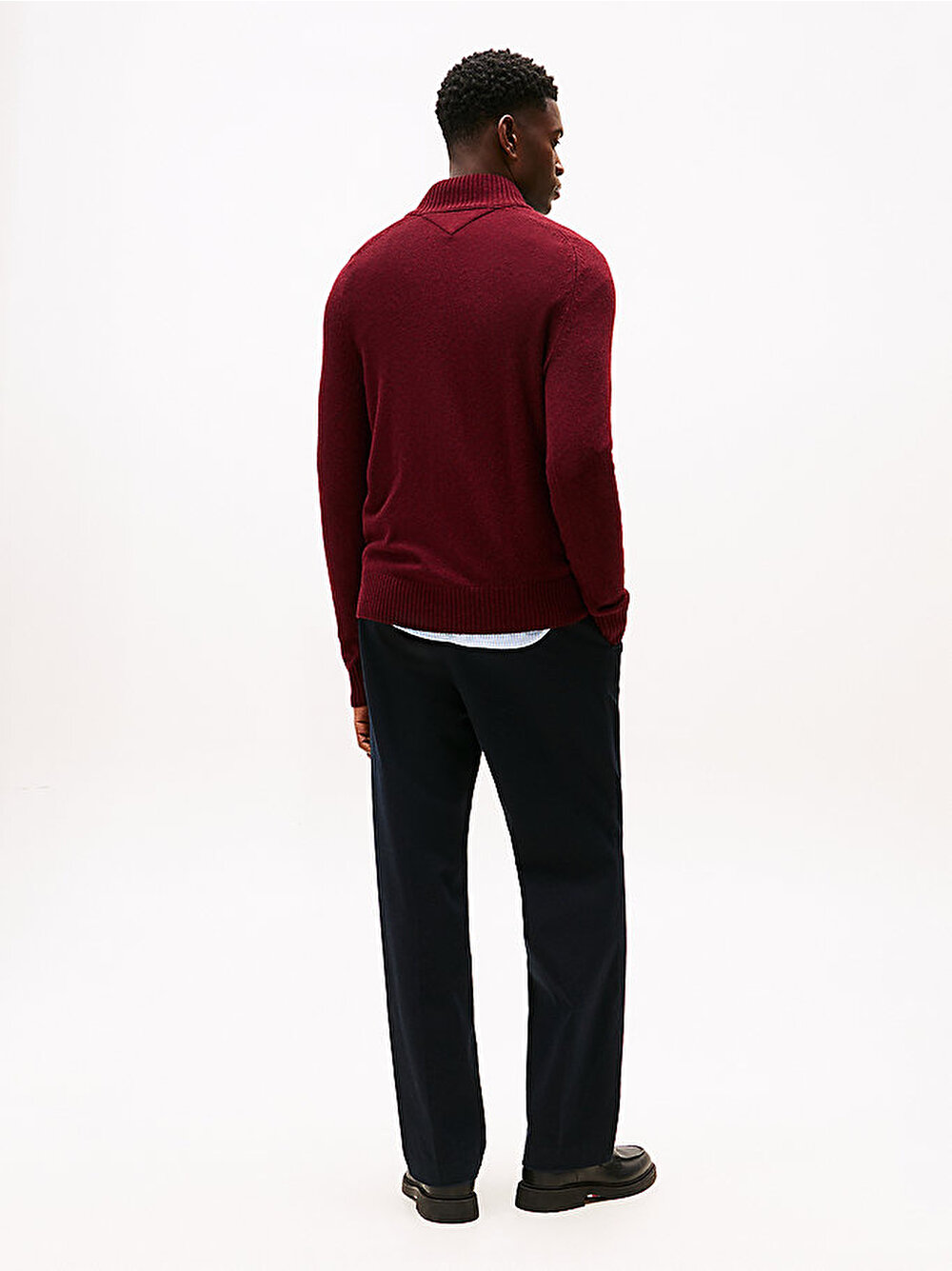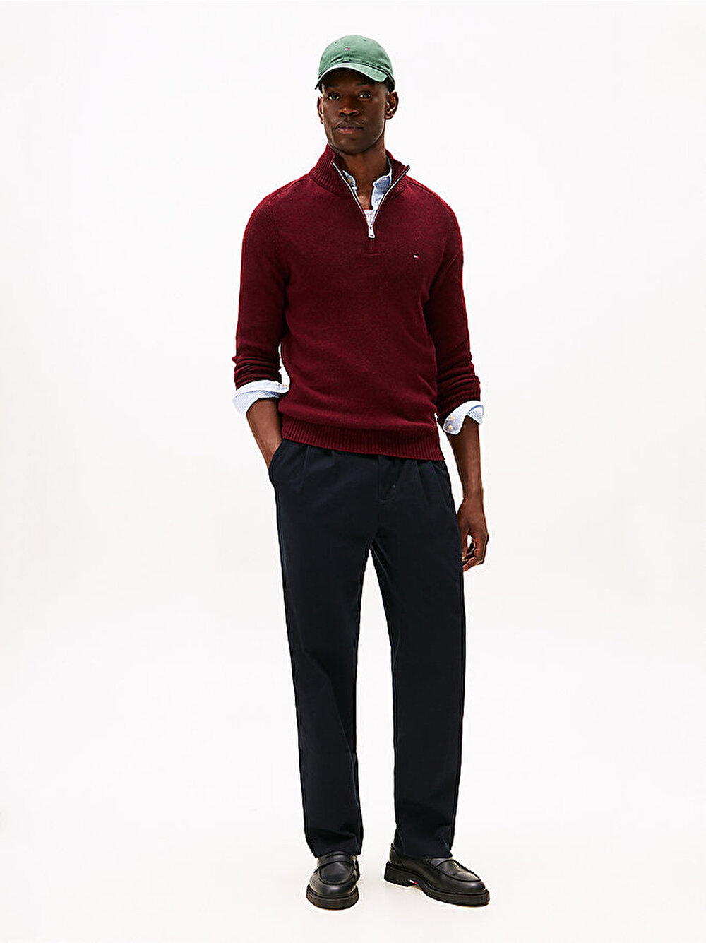 Saf kuzu yününden üretilen bu rahat kazak, farklı görünümler için stil seçenekleri sunan sofistike bir yarım fermuarlı tasarıma sahiptir.