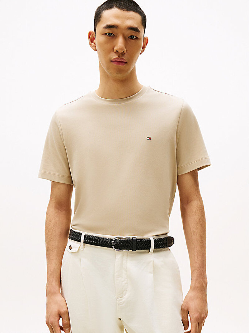 Yumuşak ve dayanıklı dokusuyla bu saf pamuklu interlok tişört, hafta sonu kombinlerini tamamlayan çok yönlü bir parçadır.