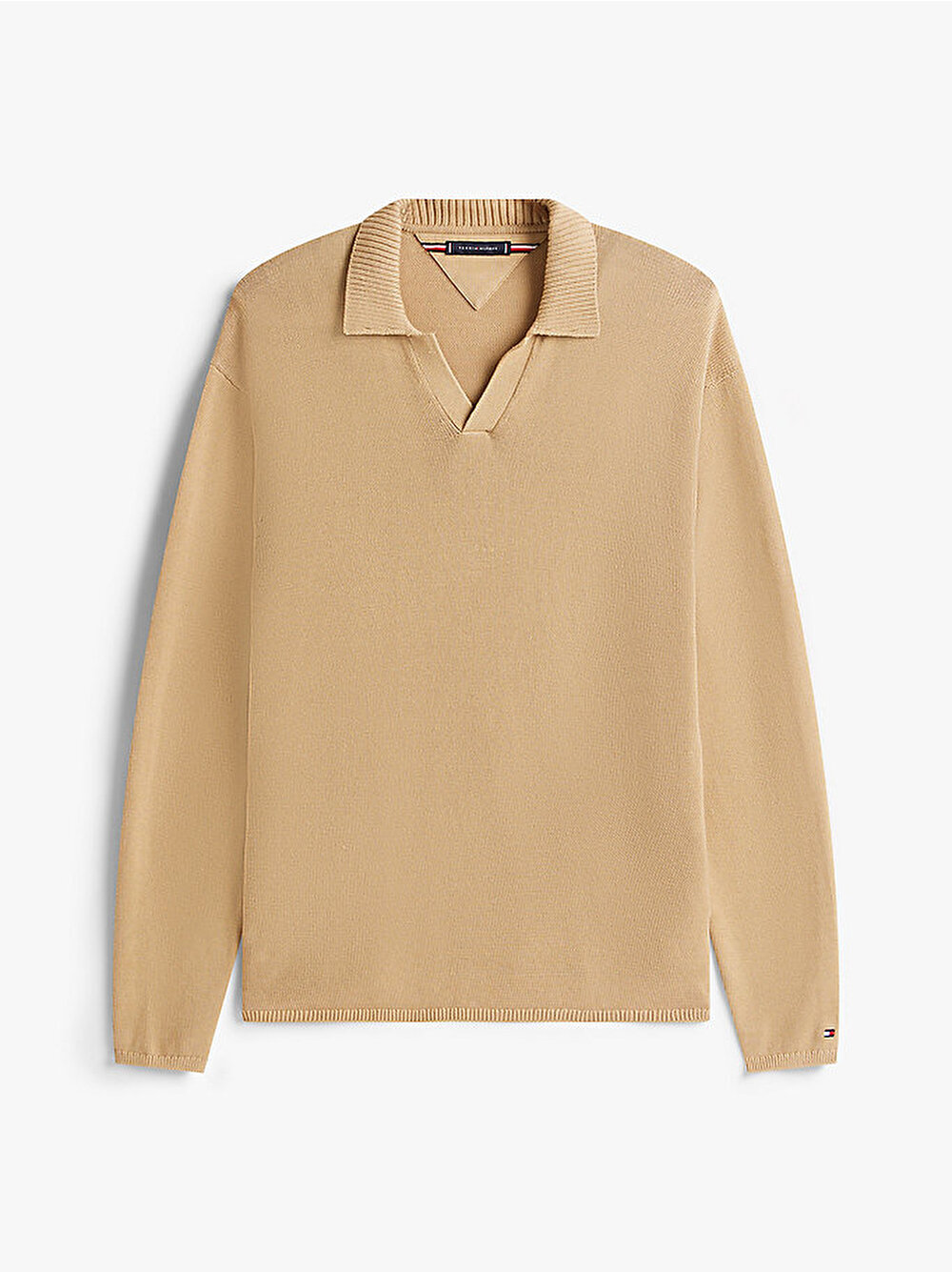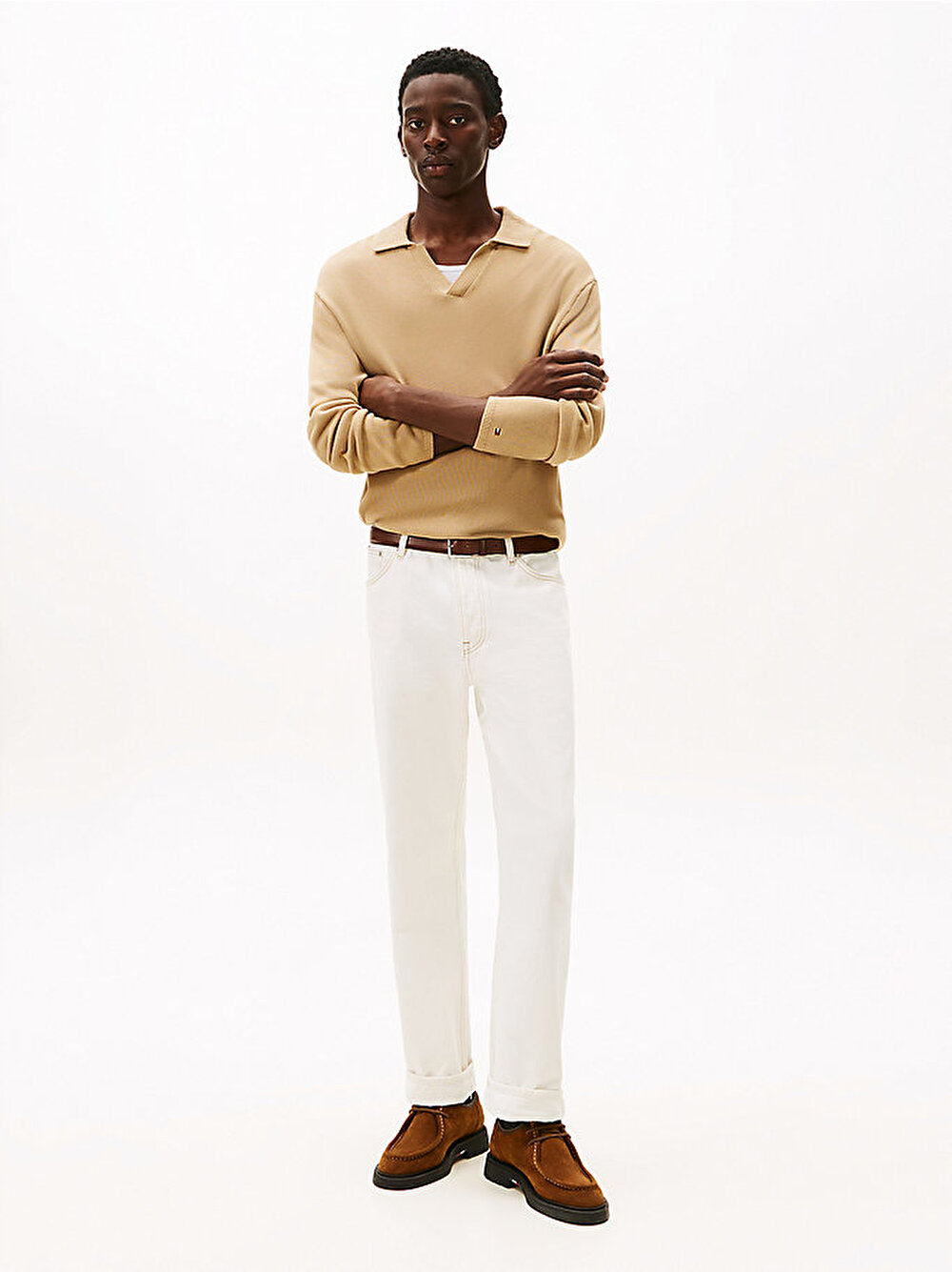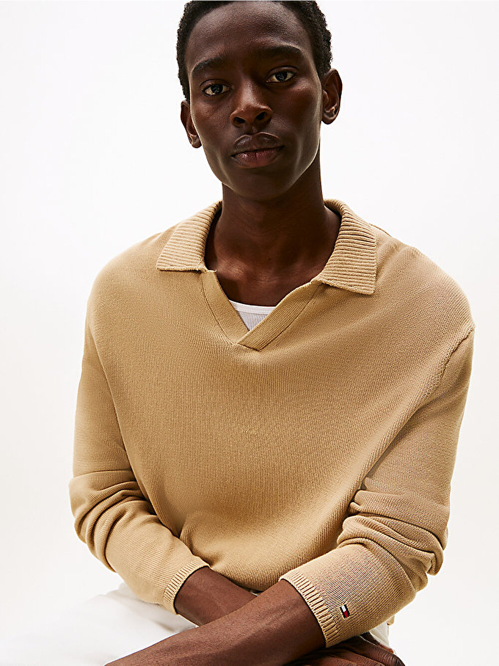 Klasik polo yaka detayına sahip bu rahat kesim kazak, hafif saf pamuktan üretilmiştir ve üst düzey bir katmanlama seçeneği sunar.
