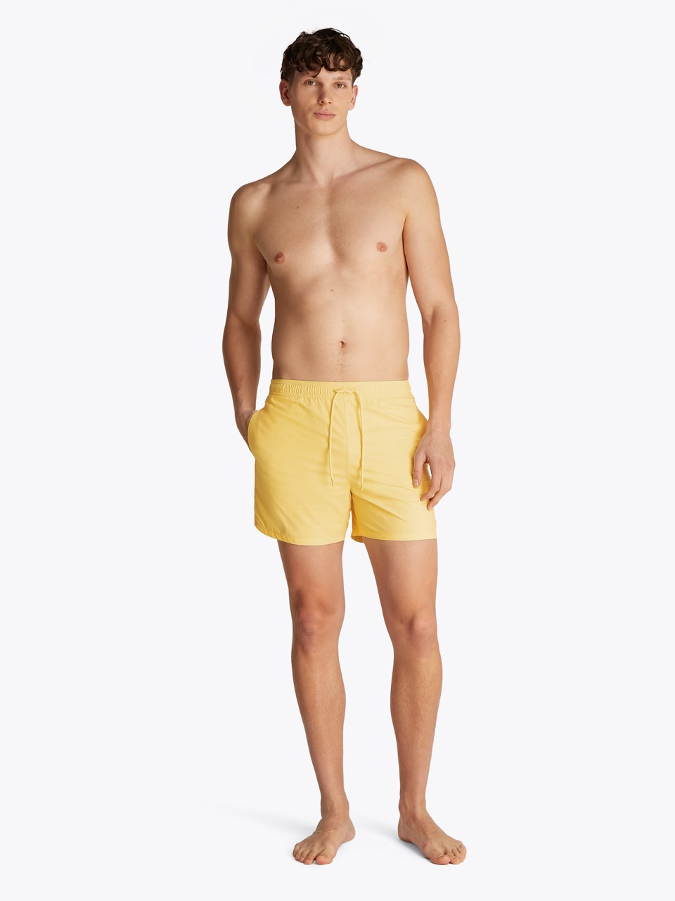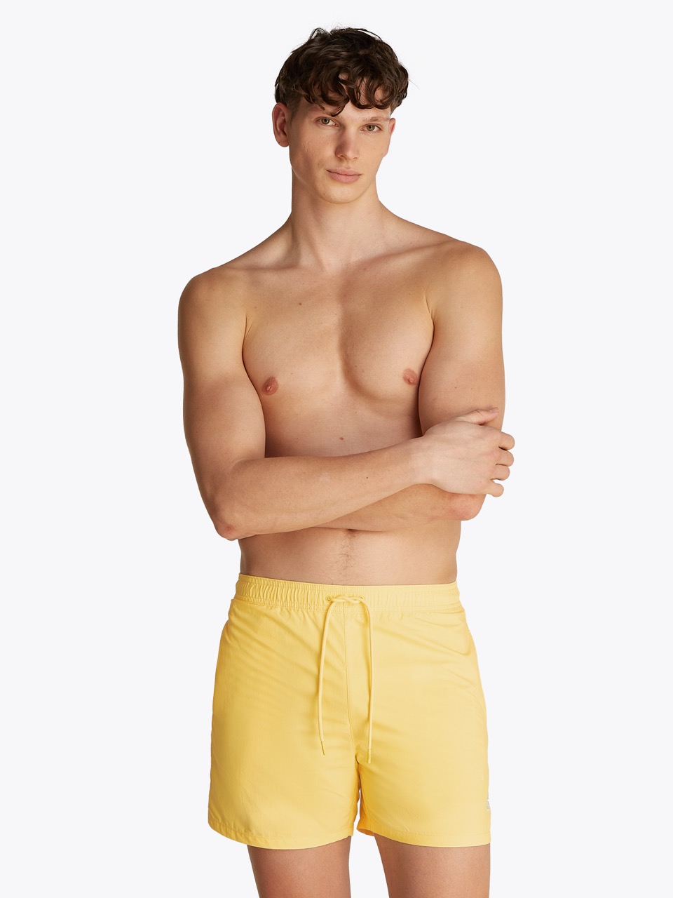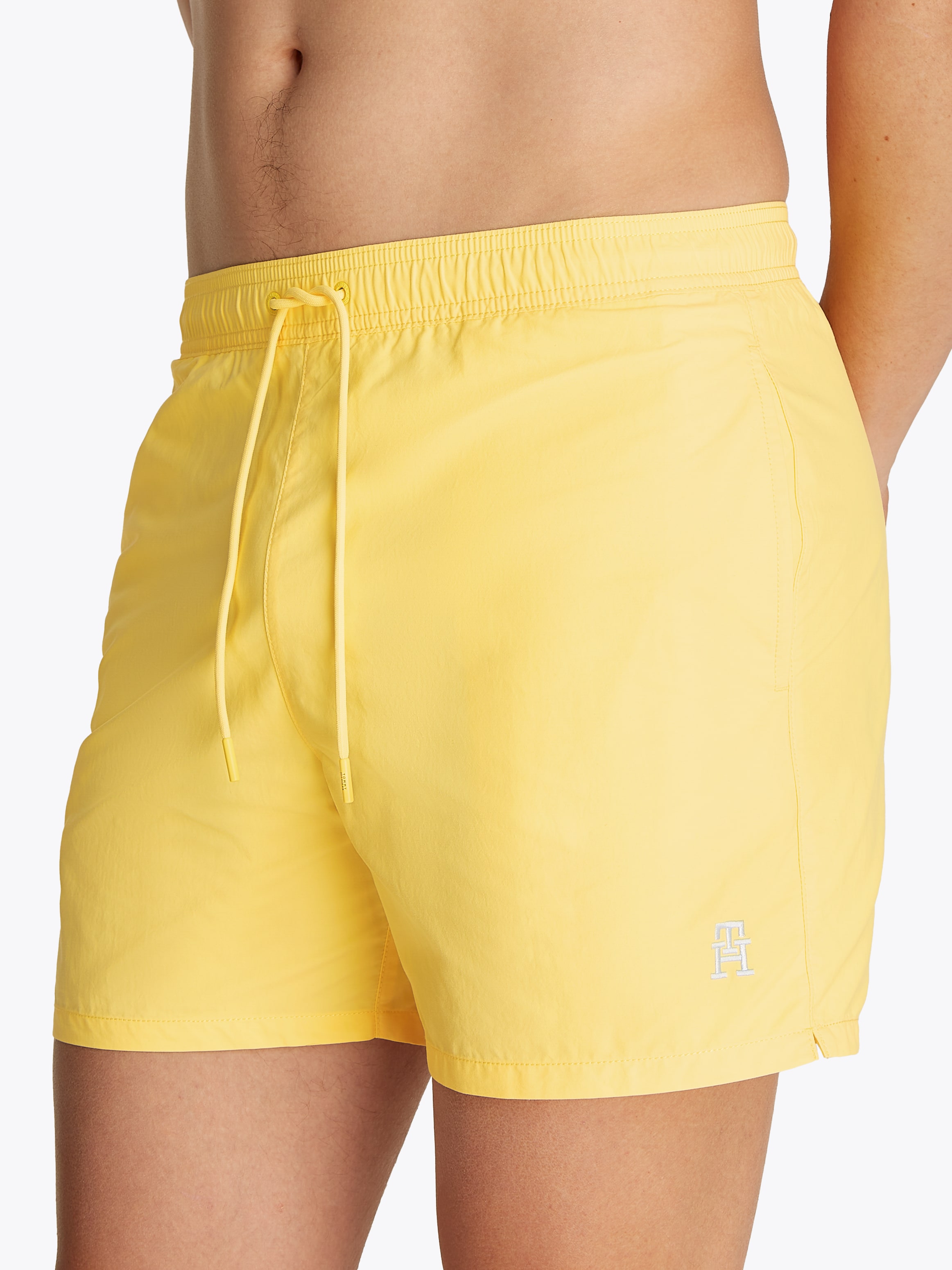 Bir bacağında TH monogram baskısı bulunan ve orta boy kesime sahip bu yüzme şortu, mayo stilinizi tamamlayan şık bir seçenek sunuyor.