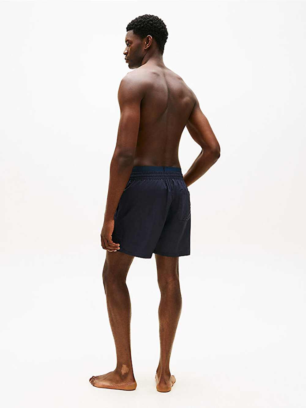 - Belirgin logo markalamasına sahip çift bel bandıyla öne çıkan bu orta boy deniz şortu, zamansız mayo stillerine taze bir yorum getiriyor.