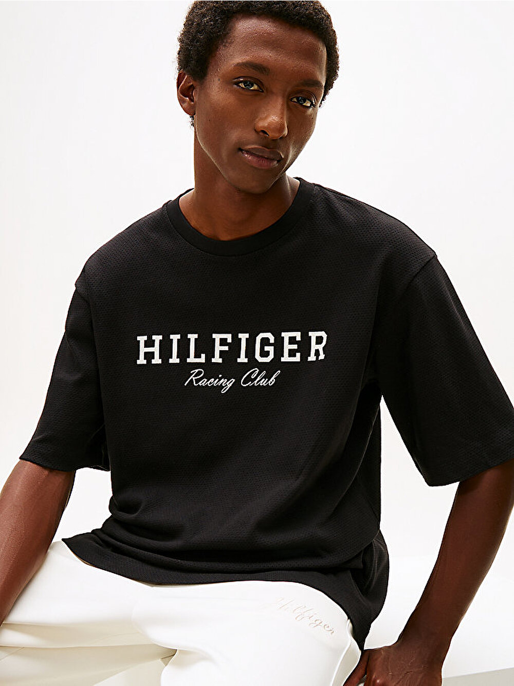 Havadar saf pamuklu file dokudan üretilen bu sportif T-shirt, ön kısmındaki üniversite tarzı logo ile athleisure bir stil sunar.