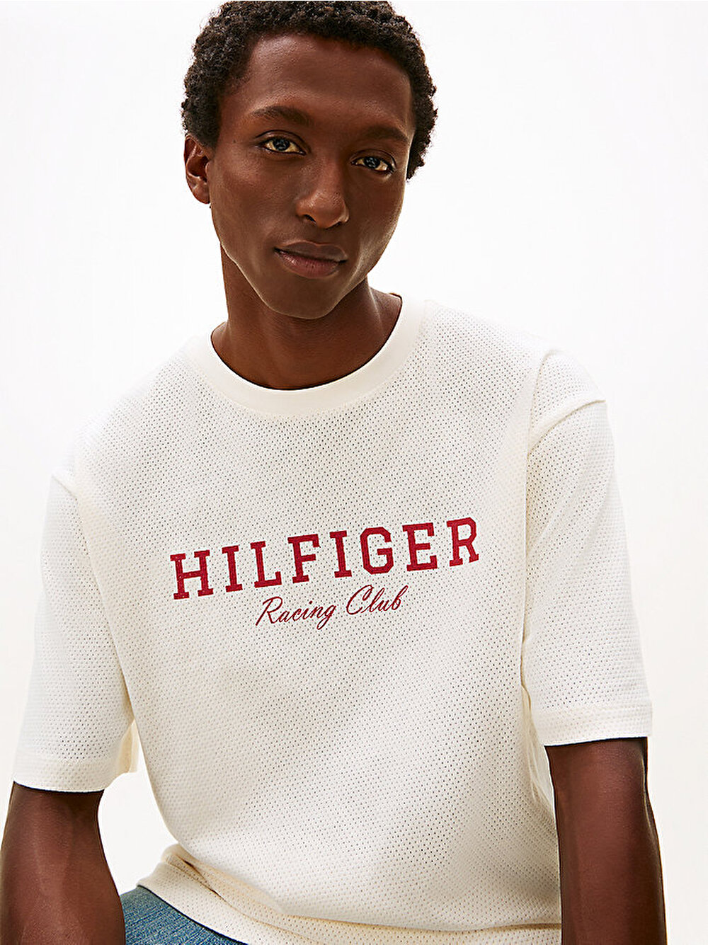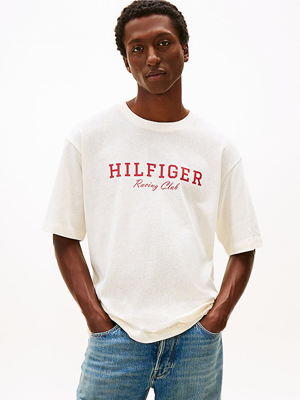 Havadar saf pamuklu file dokudan üretilen bu sportif T-shirt, ön kısmındaki üniversite tarzı logo ile athleisure bir stil sunar.