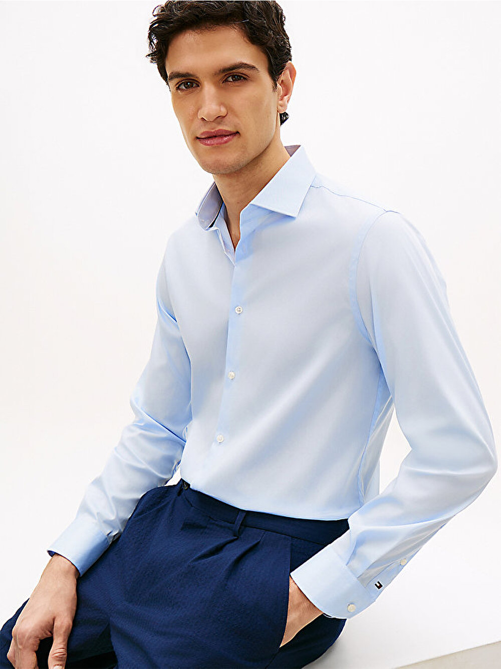 - Bu slim fit gömlek, dört yönlü esnekliğe sahip pamuk karışımlı dimi kumaştan üretilmiştir ve şık-gündelik kombinlerinize esnek bir rahatlık katar.
