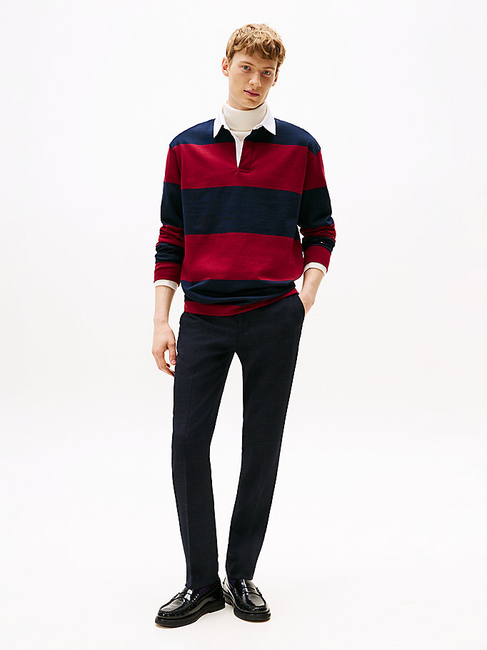 Üzerinize tam oturan şık bir siyah pantolon ve klasik ayakkabılarla sade bir görünümü ya da rahat dikimli ve çizgili bir pantolonu bir erkek ceketiyle tamamlayarak tasasız bir tavrı tercih edebilirsiniz. Özel dikim kalitesine meraklıysanız, ekose erkek pantolonlarımızdan biriyle naş döndürebilirsiniz. Tercihiniz düz paçalı veya normal kesim pantolonlar olsun, aradığınızı bulacaksınız. Tommy Hilfiger erkek pantolonlarıyla tarzınızı ortaya koyun.