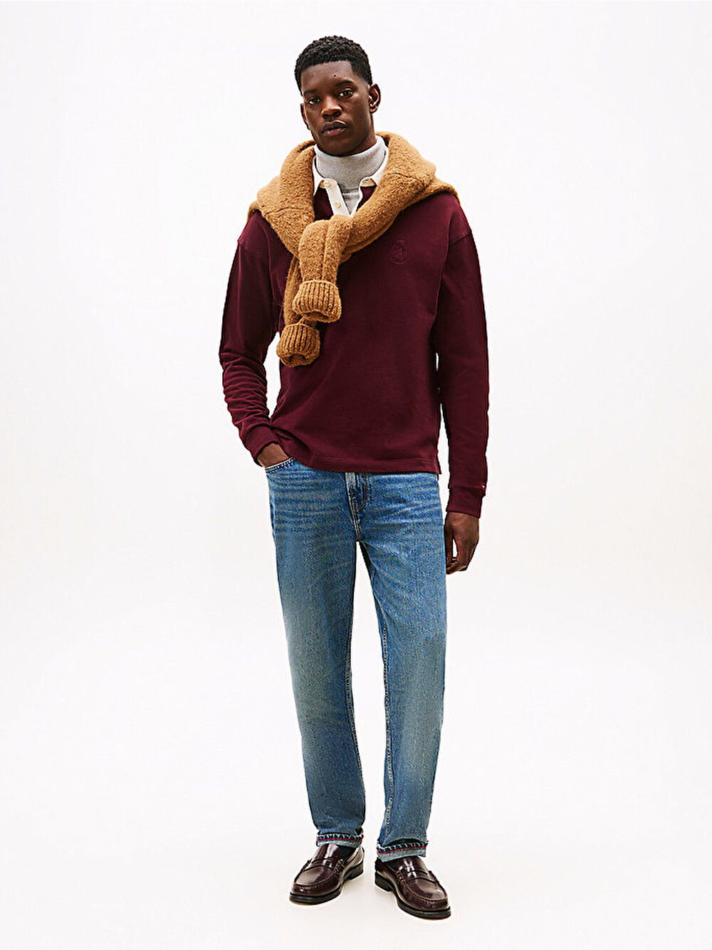 Saf şeftali yüzeyli pamuklu jarse kumaşıyla ekstra yumuşaklık sunan bu klasik rugby sweatshirt, tonal TH arma nakışıyla kolej cazibesini arttırıyor.