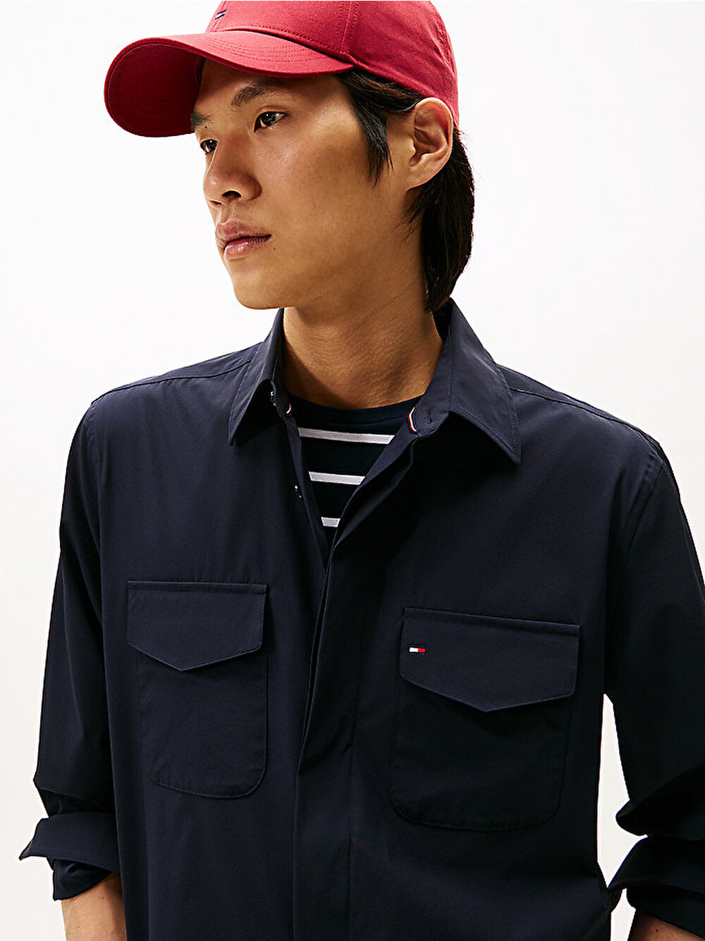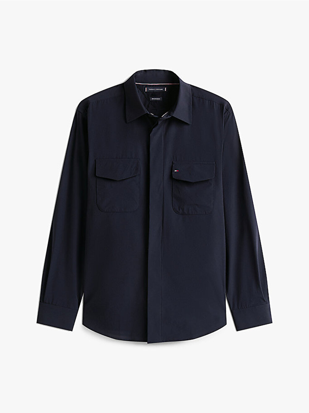 Bu paketlenebilir gömlek, şık bir görünümü rahat bir kesim ve subay tarzı bir tasarımla birleştiren çok yönlü bir seyahat eşlikçisidir.