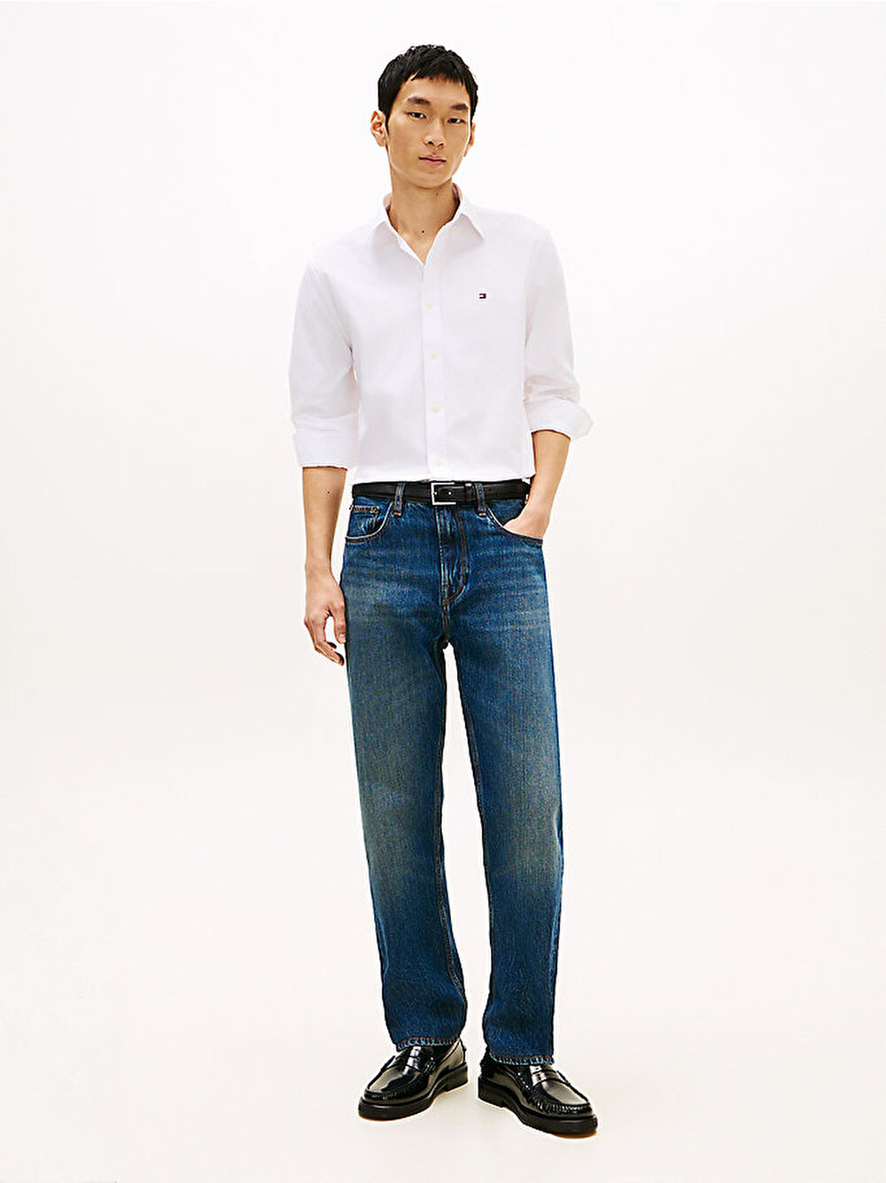 - • Göğüste Tommy Hilfiger bayrak işlemeli