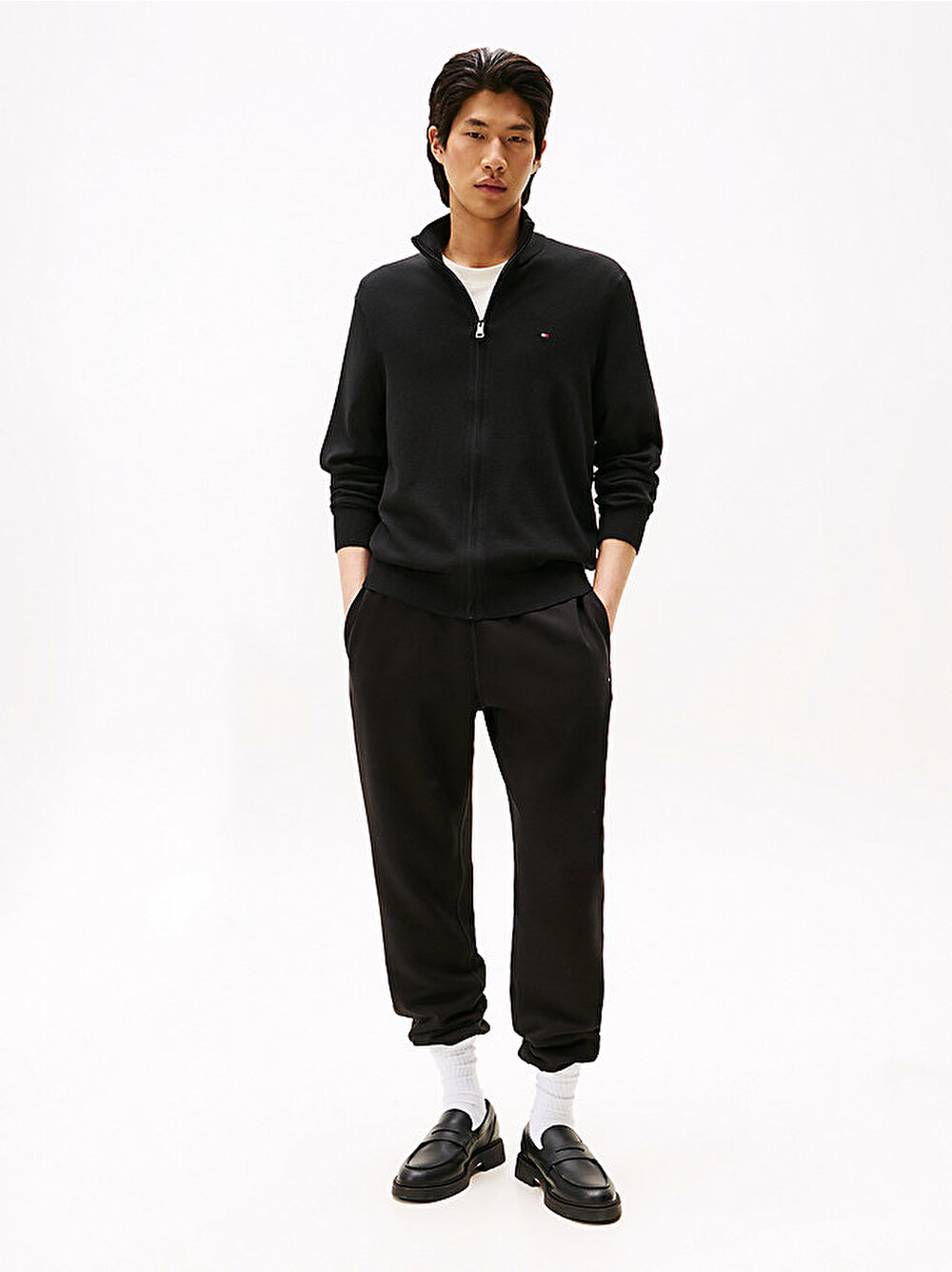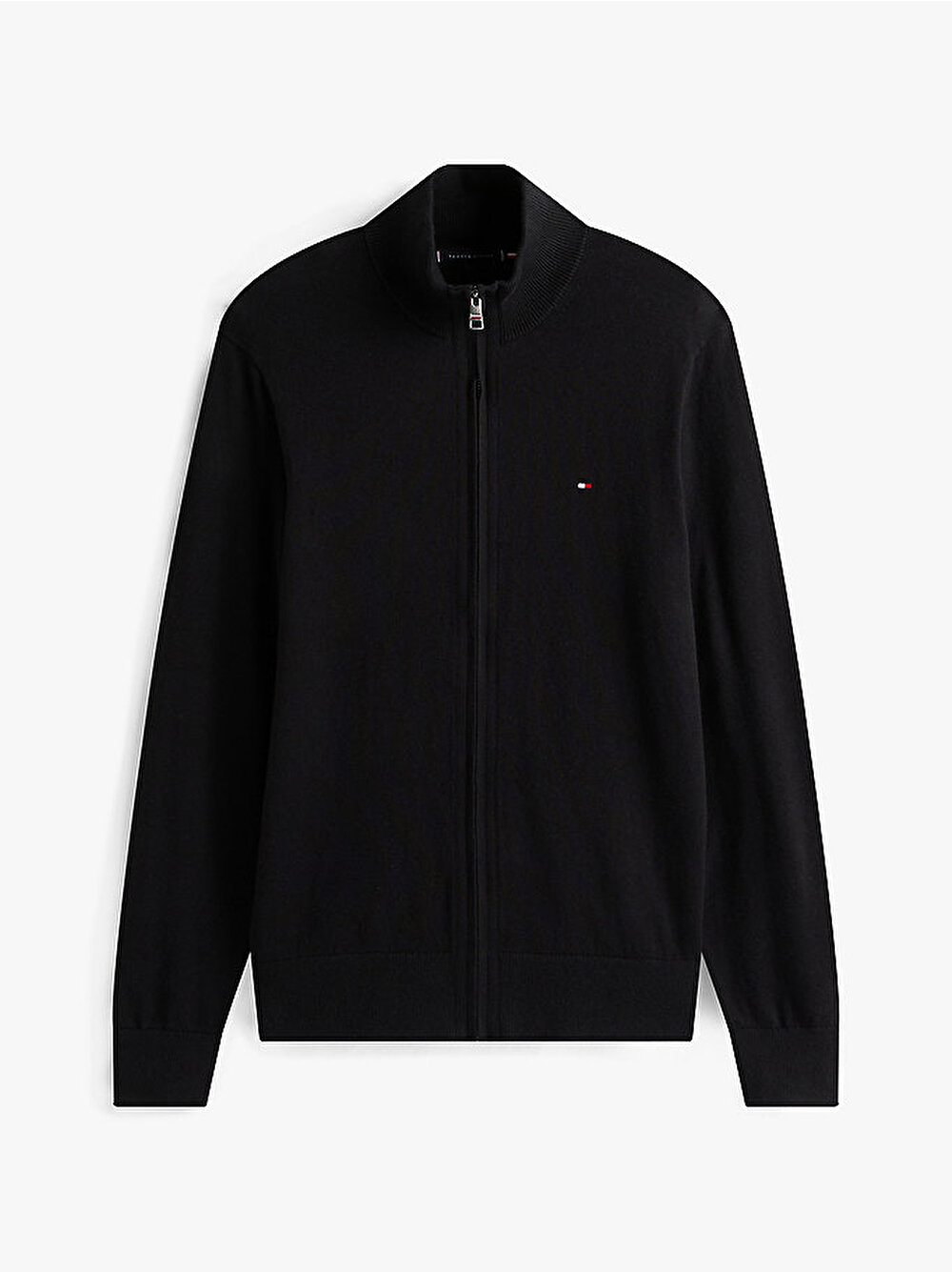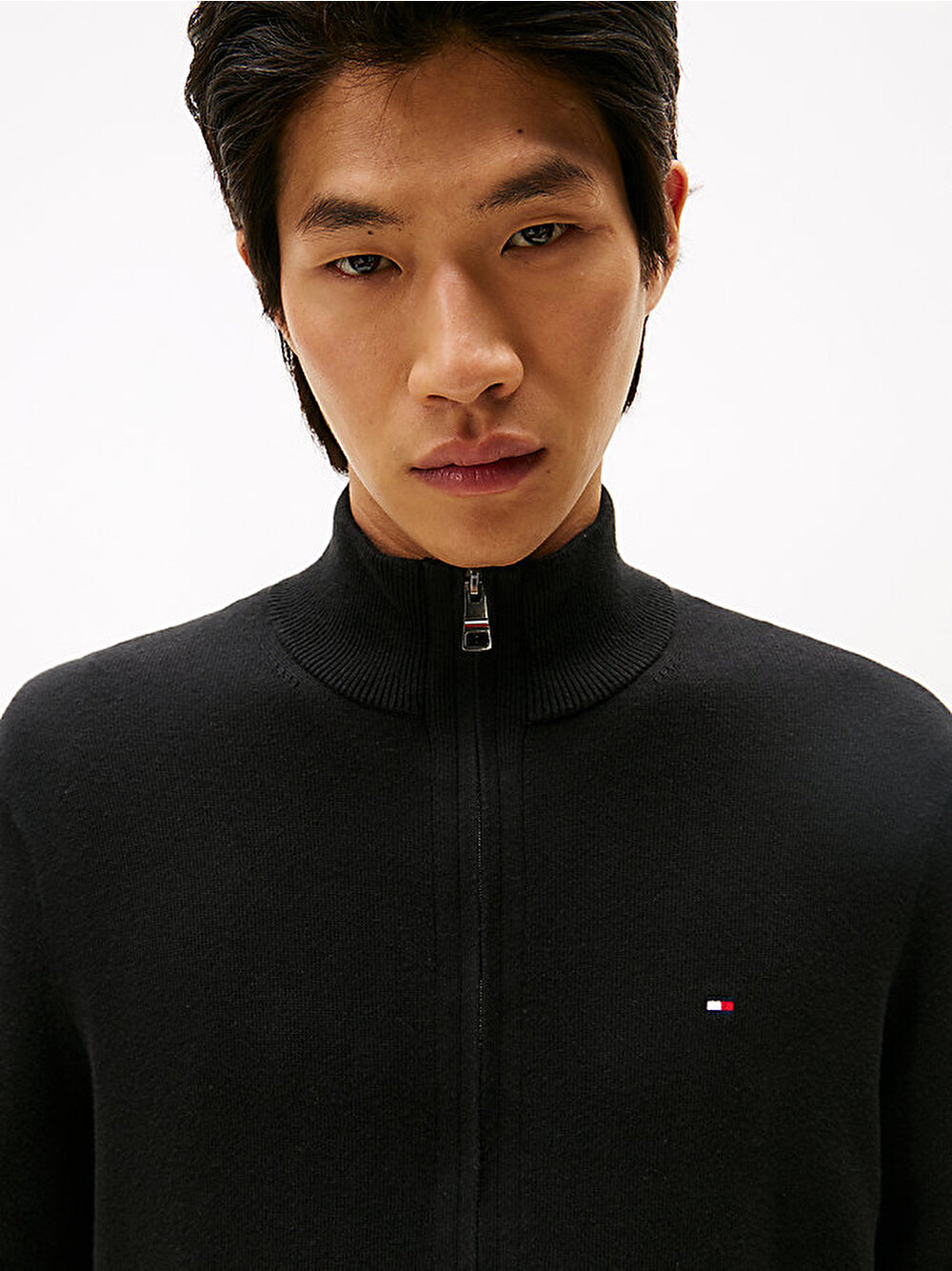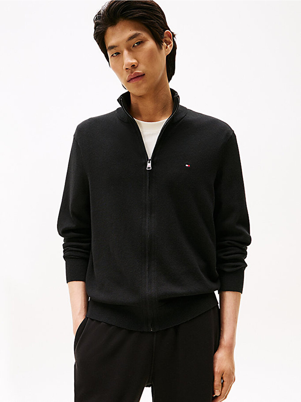 Bu rahat fermuarlı kazak, rafine bir görünüm ve his için Pima pamuk kaşmir karışımıyla tasarlanmış, ve bayrak nakışı ile tamamlanmıştır.