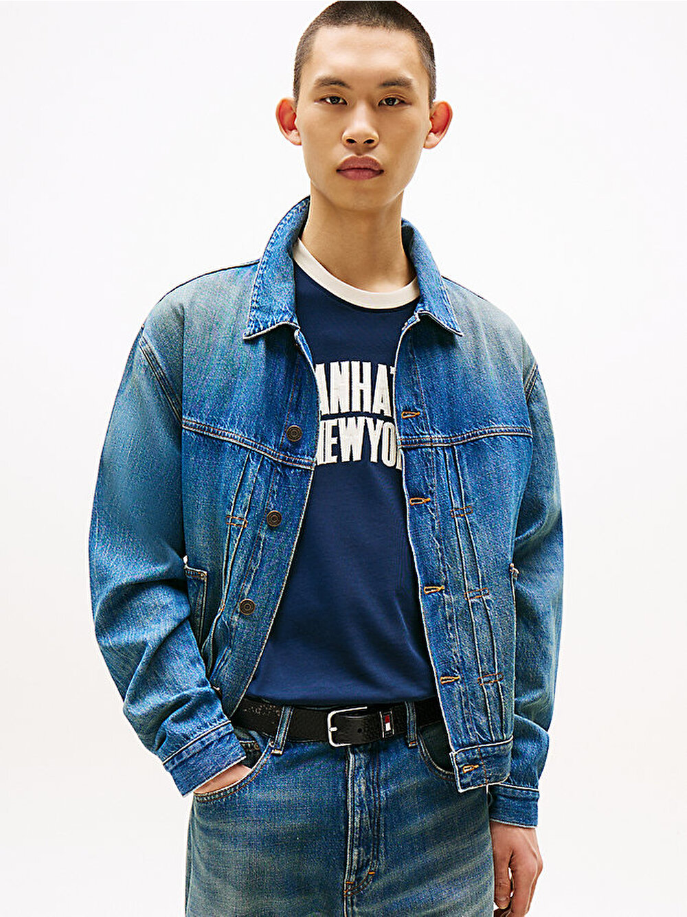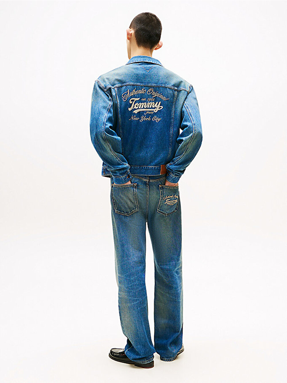 Yama cepler, pile detayları ve çarpıcı sırt baskısıyla dikkat çeken bu hafif denim trucker ceket, dış giyiminize modern bir dokunuş kazandırır.
