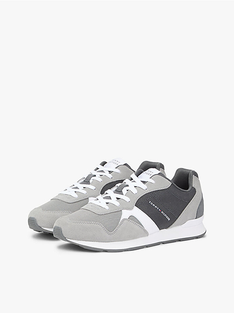 Klasik runner silüetine sahip bu süet spor ayakkabı, farklı dokularda paneller ve kabartma logo detaylarıyla tamamlanmıştır.