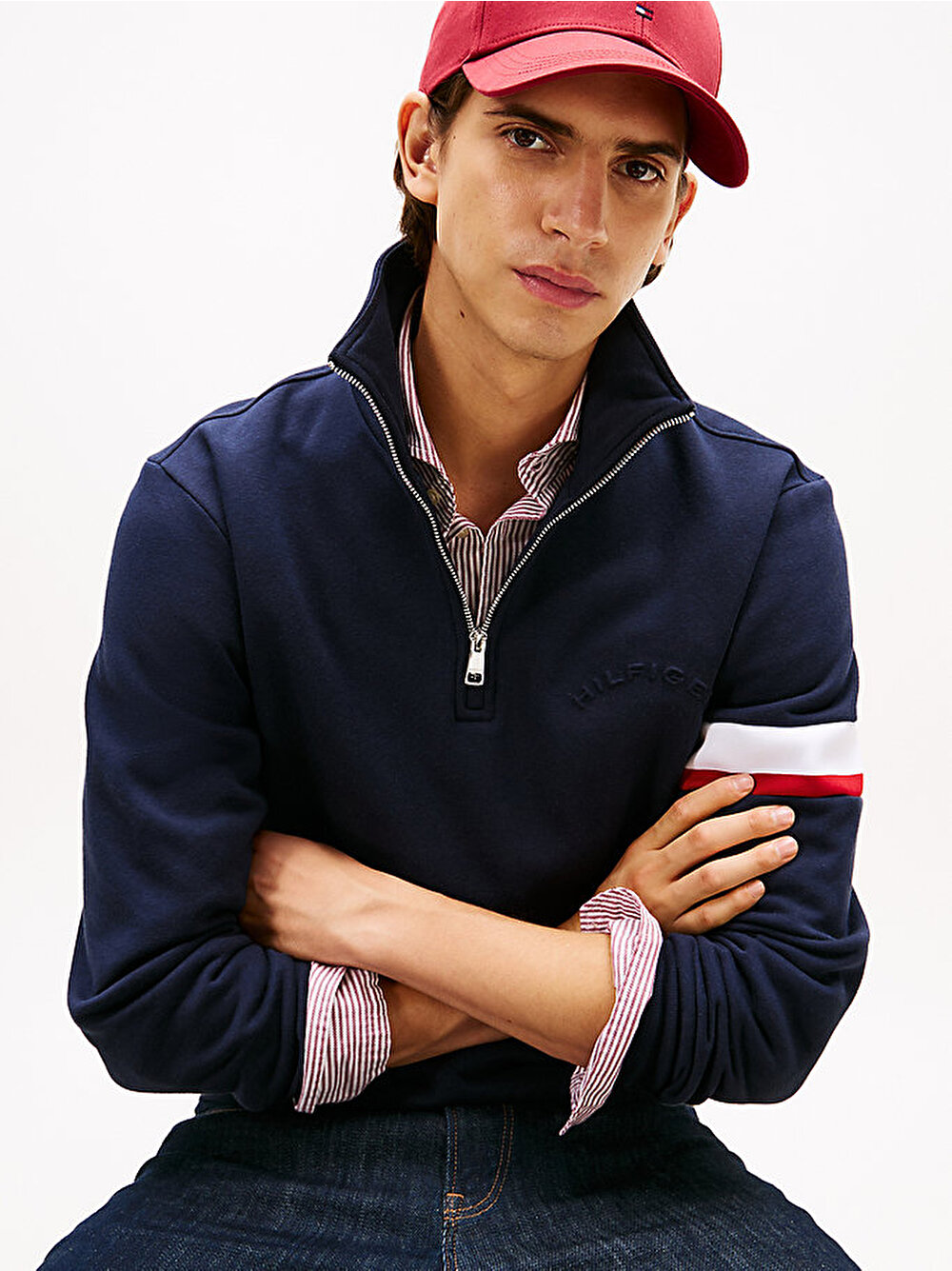 Bu rahat çeyrek fermuarlı kazak, kolay hareket edebilmeniz için yenilikçi pamuk karışımlı polar kumaştan üretilmiştir ve dinlenme zamanlarınız için ideal bir seçimdir.
