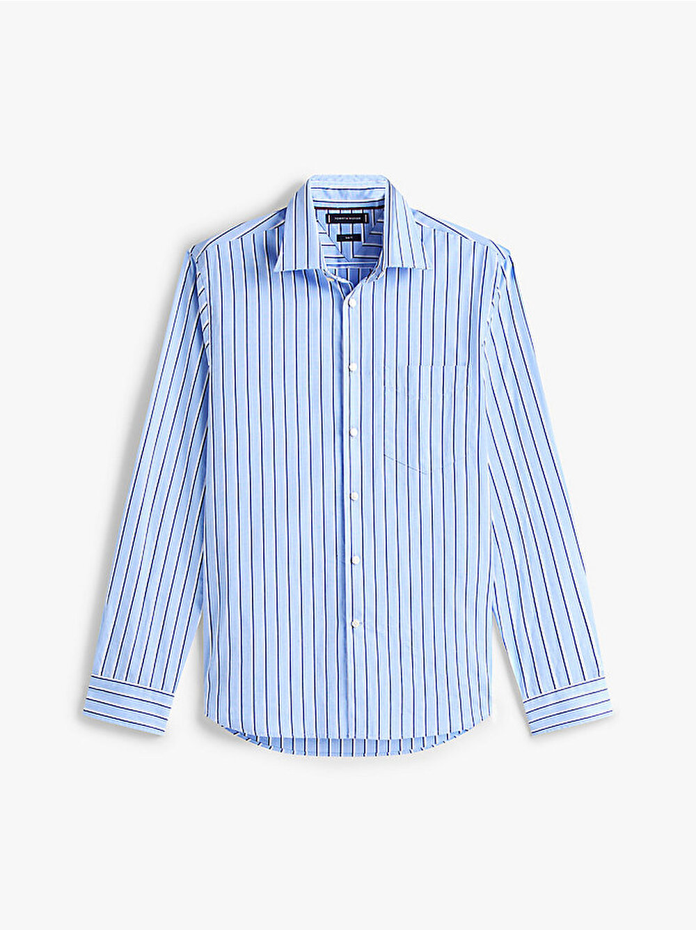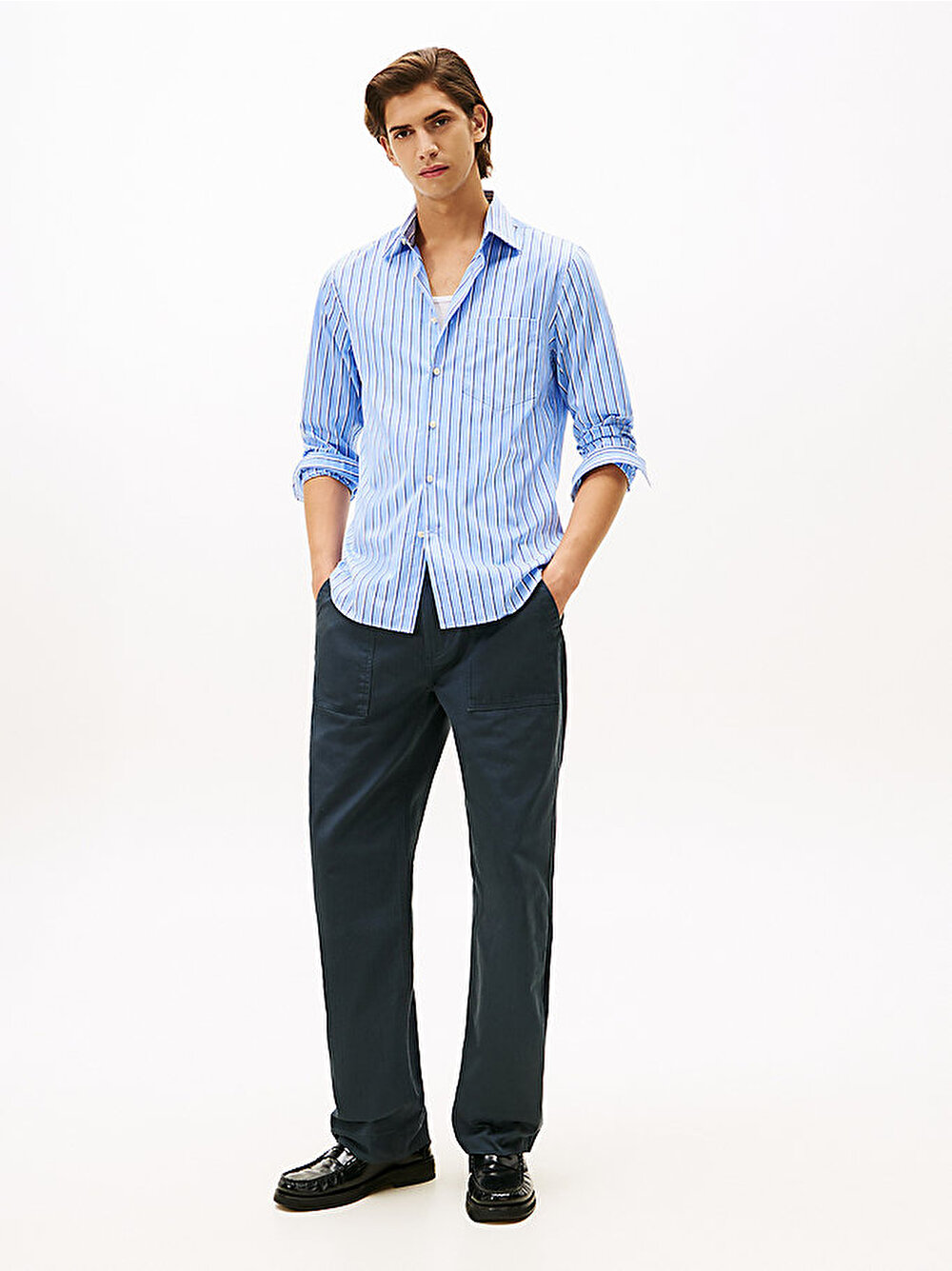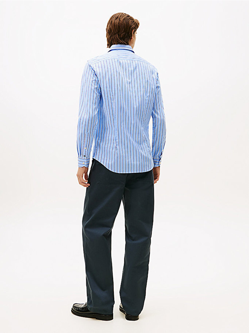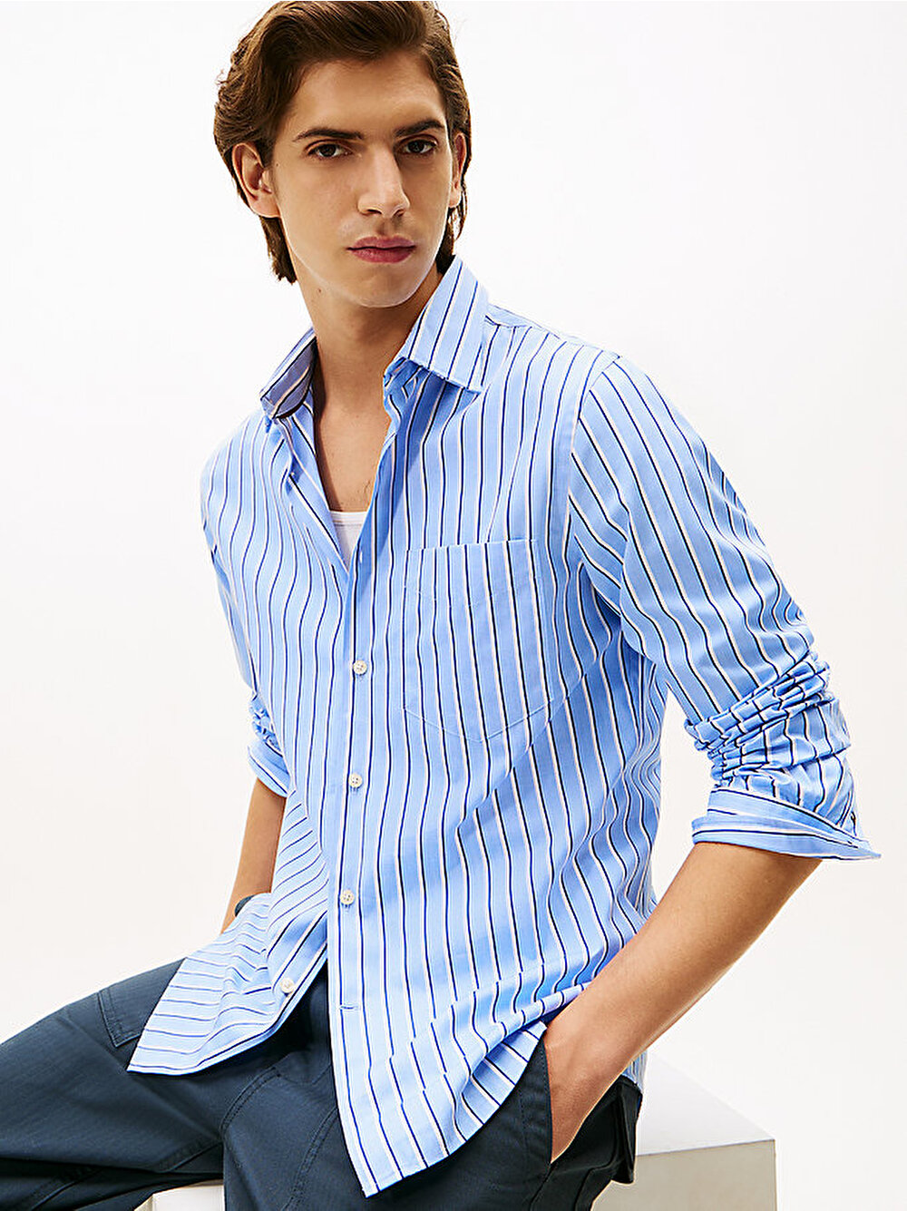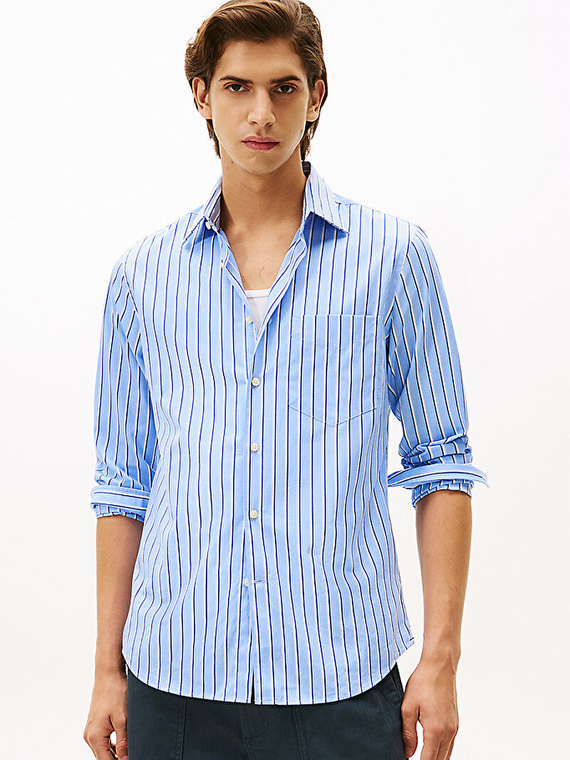 Baştan aşağı dikey çizgili tasarıma sahip ve göğüs yama cebi ile detaylandırılmış bu slim fit gömlek ile zahmetsizce smart bir görünüm yaratın.