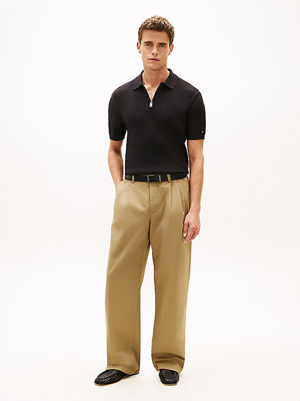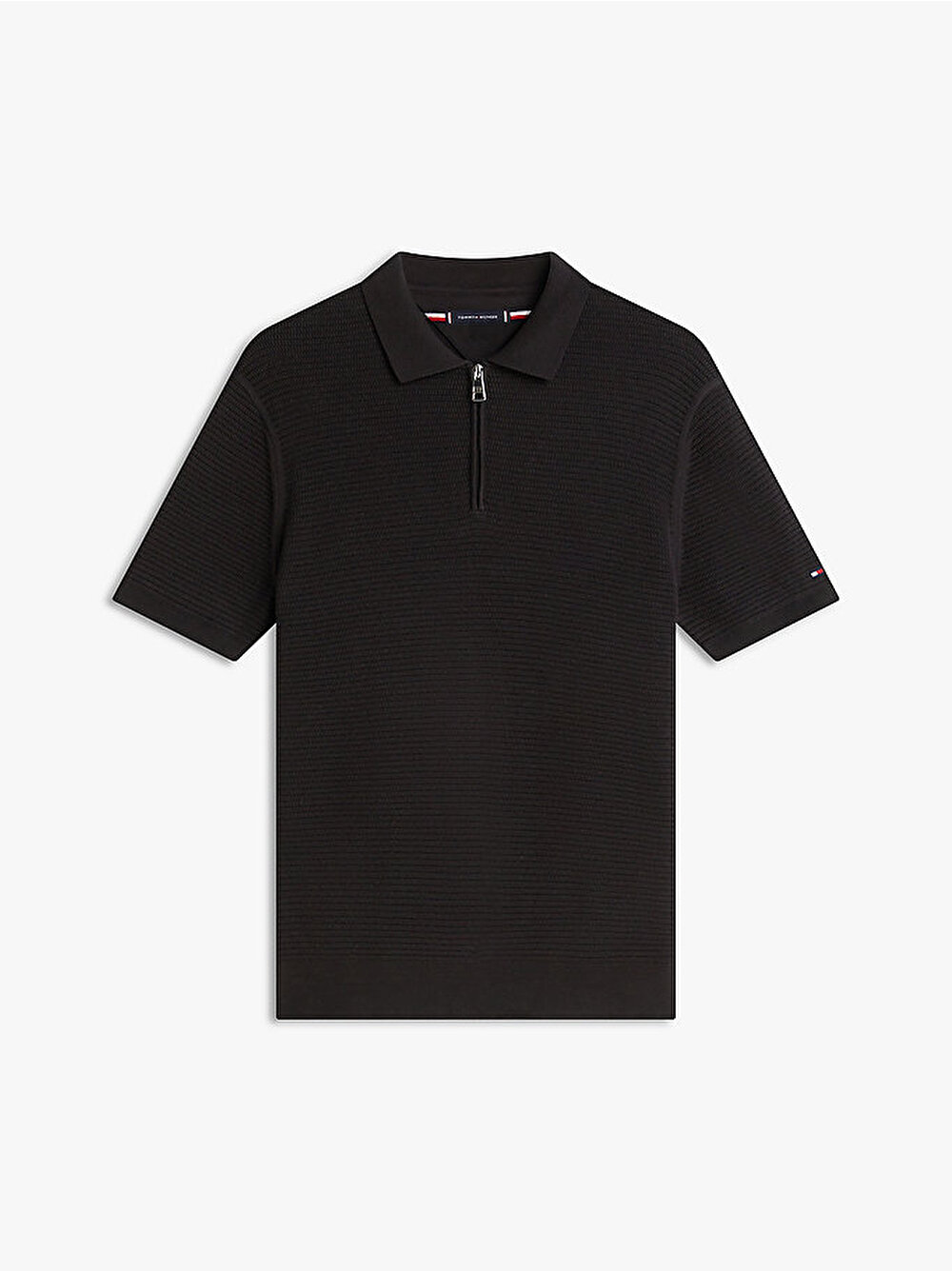 - Sportif fermuarlı pat detayıyla öne çıkan bu polo tişört, daha dokulu ve dikkat çekici bir görünüm için saf pamuktan kalın örgü tasarımla üretilmiştir.