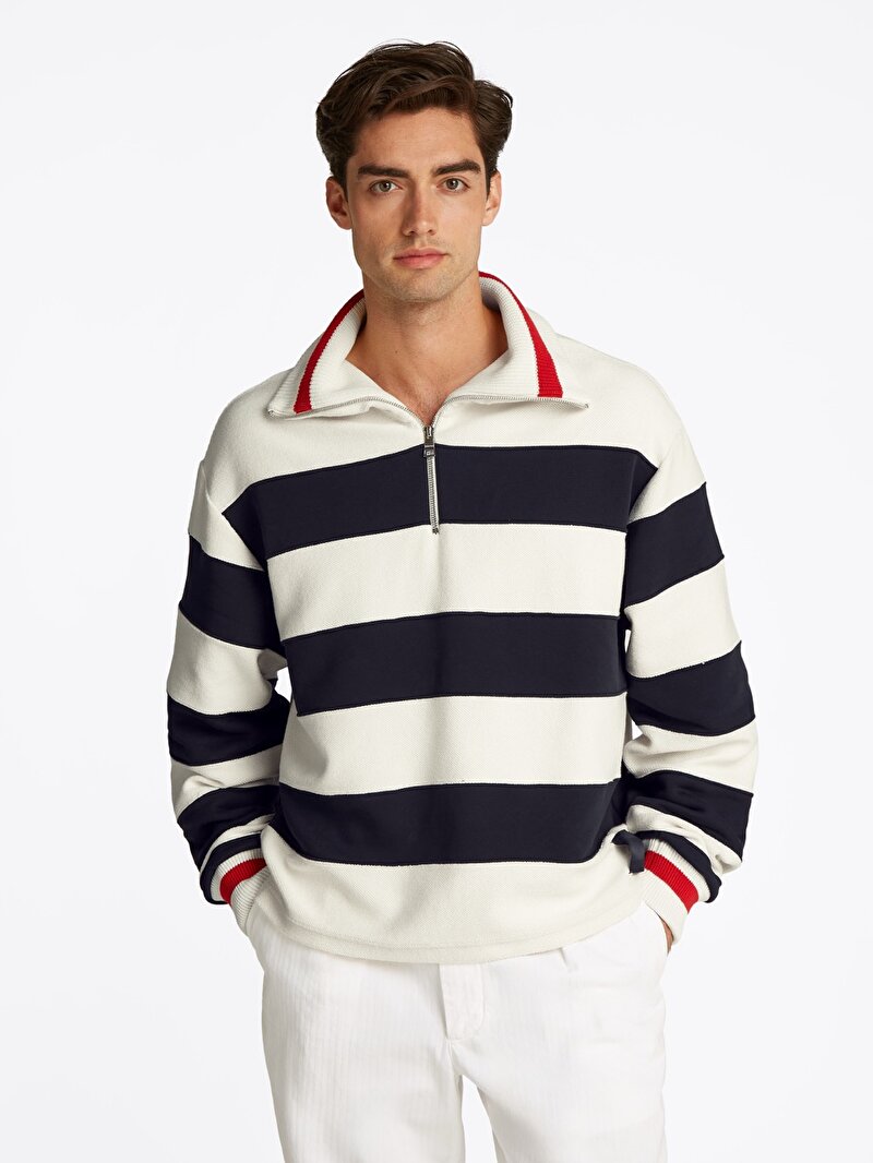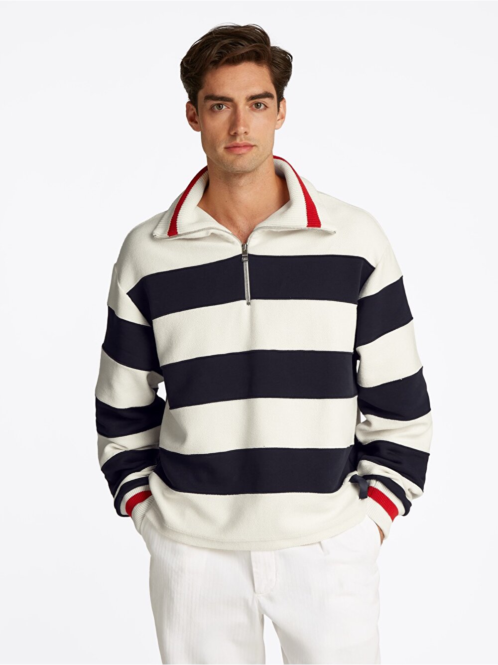 Tommy Hilfiger'dan kazak sweatshirt. Yumuşacık kumaşıyla bu sweatshirt, klasik kesimiyle minimalist şıklığı tam anlamıyla yansıtıyor.