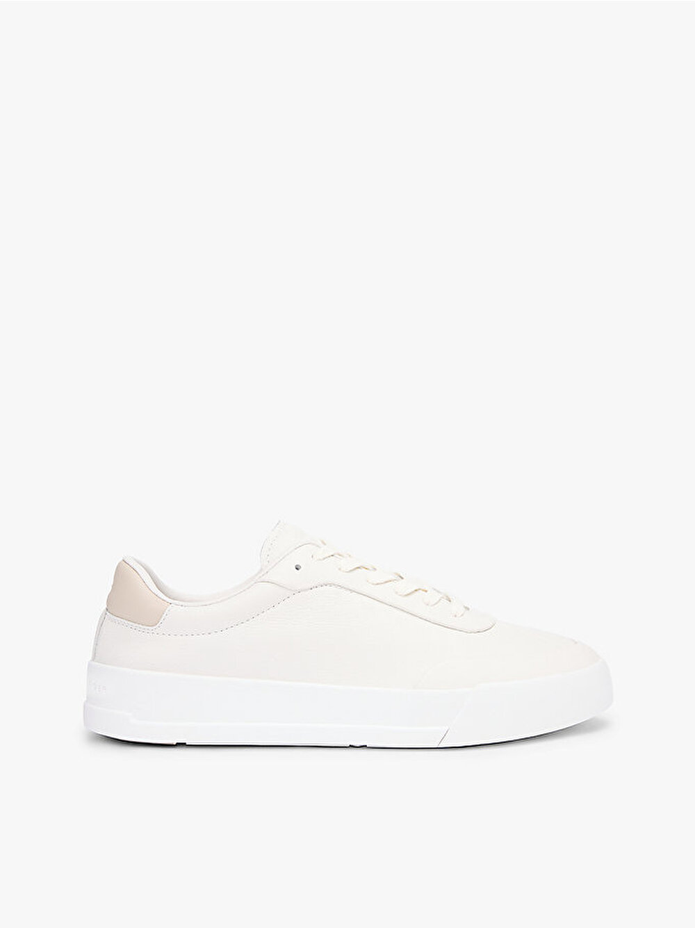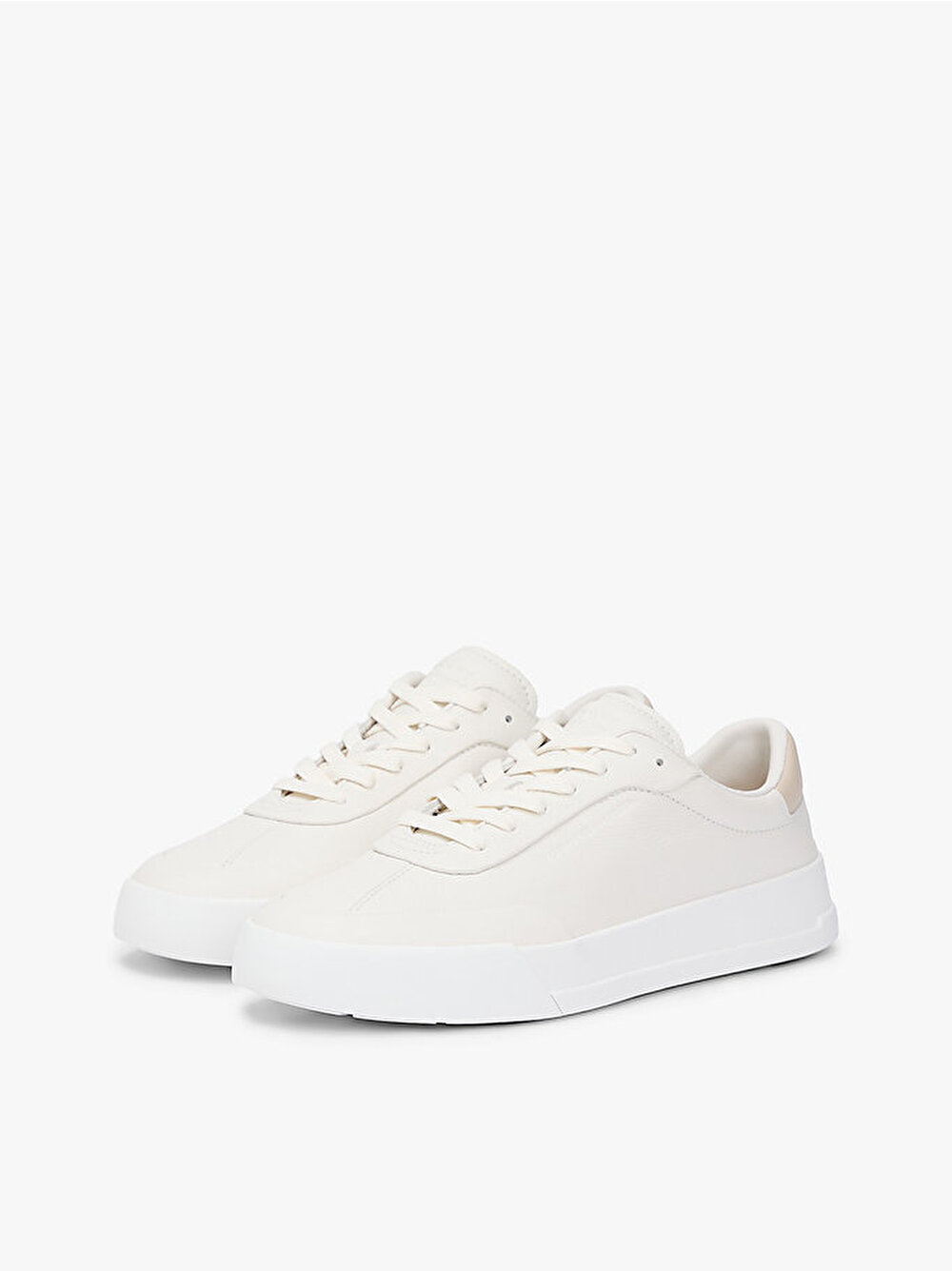 Bu premium deri court trainers spor ayakkabı, ince logo kabartması ve tonal üst dikişle zenginleştirilmiş klasik bir görünüm sunuyor.