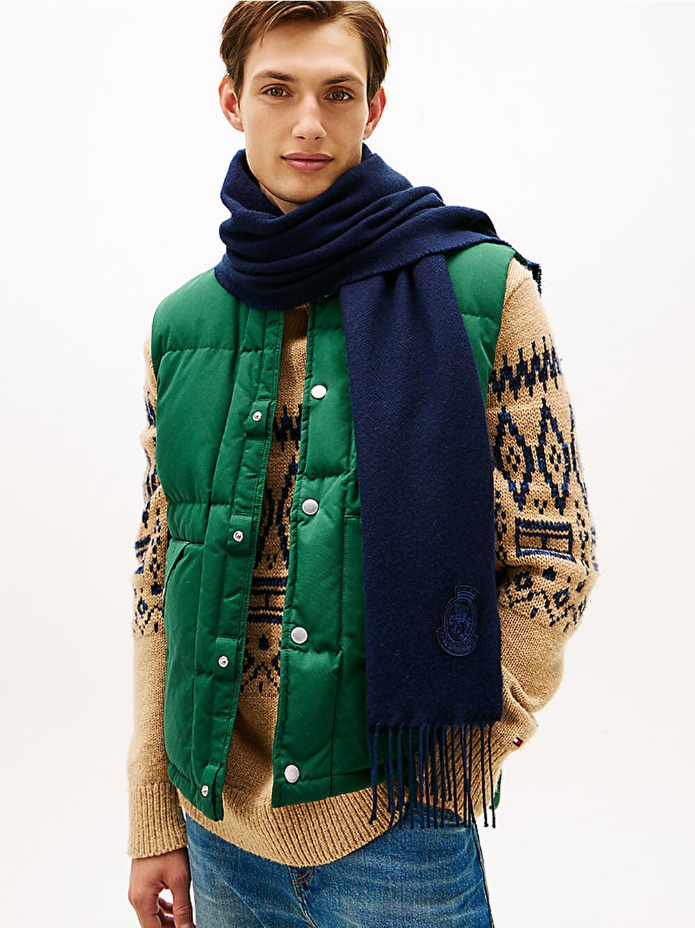 Serin günlerde sizi sıcacık tutacak bu lüks, yumuşak yün-kaşmir karışımı orta kalınlıktaki atkı, kaliteli TH arma yama ile tamamlanmıştır.