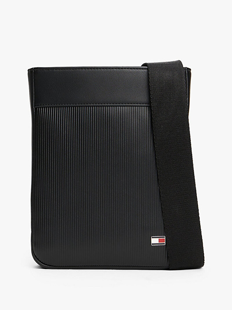 Bu şık çapraz askılı çanta ile kıyafetinizi tamamlayın; ribanalı detaya, emaye bayrağa ve günlük ihtiyaçlarınızı koyabileceğiniz alana sahiptir.