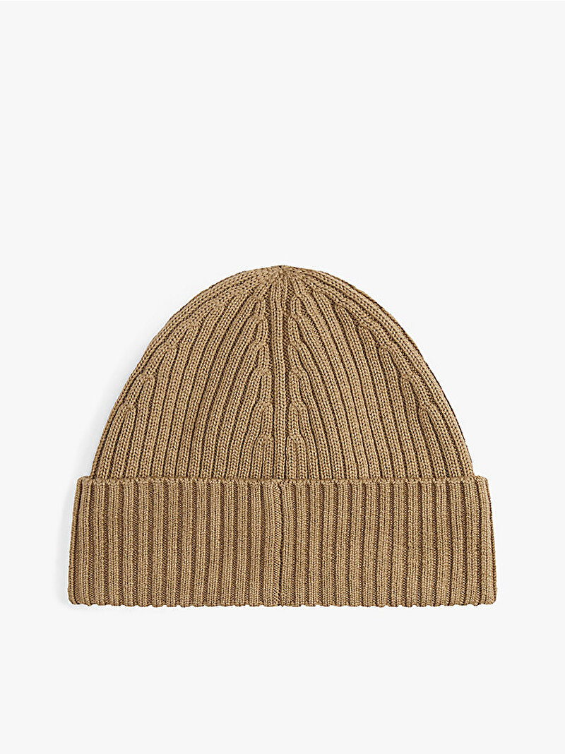Emaye bayrak logolu ribana örgü manşet detayıyla tamamlanan bu bere, saf yün dokusuyla sıcak ve konforlu bir kullanım sunuyor.