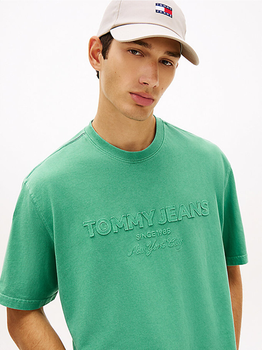 - • Göğüste tonal Tommy Jeans NYC aplike logo ve nakış