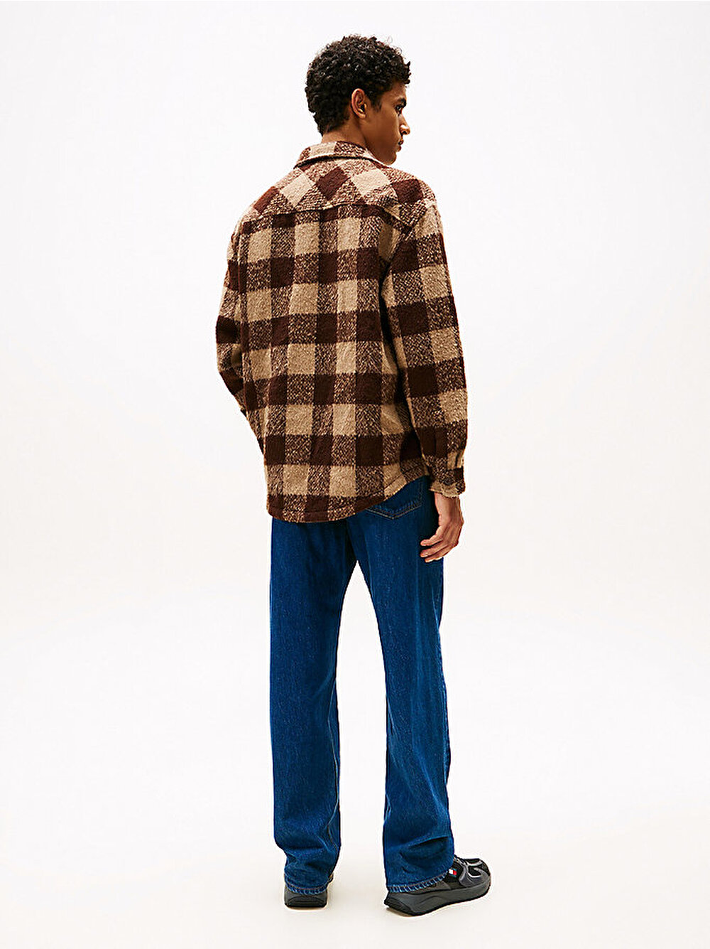 Dokunsal bir görünüm için yumuşak, çift fırçalanmış flanelden üretilen bu oversize kareli gömlek ceket ile ile şık bir şekilde katmanlı giyinin.