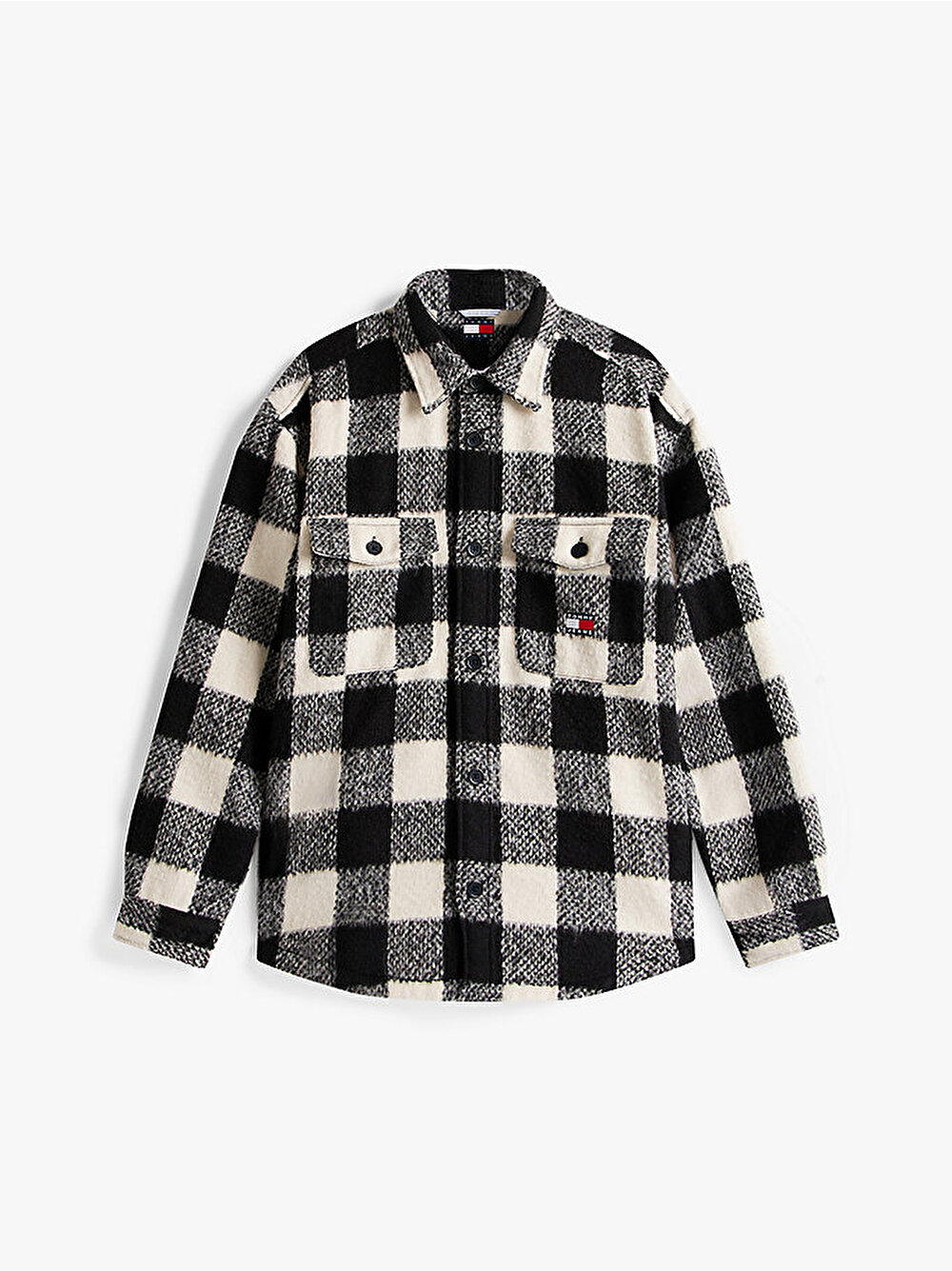 Dokunsal bir görünüm için yumuşak, çift fırçalanmış flanelden üretilen bu oversize kareli gömlek ceket ile ile şık bir şekilde katmanlı giyinin.