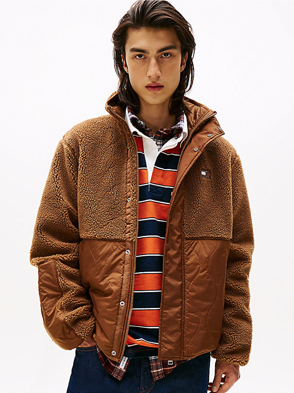 Mükemmel bir geçiş katmanı olan bu rahat dolgulu ceket, peluş ve kapitone panelleri birleştirerek havalar soğuduğunda sizi sıcak tutar.