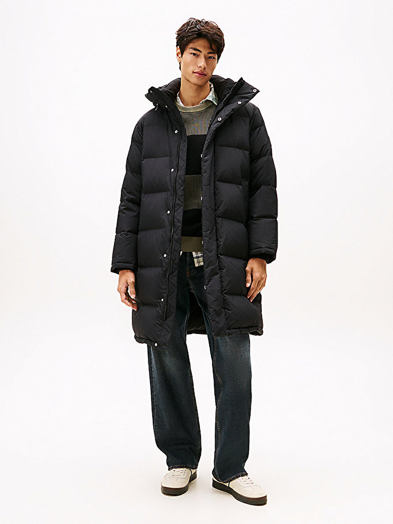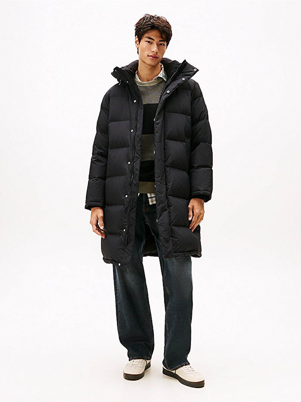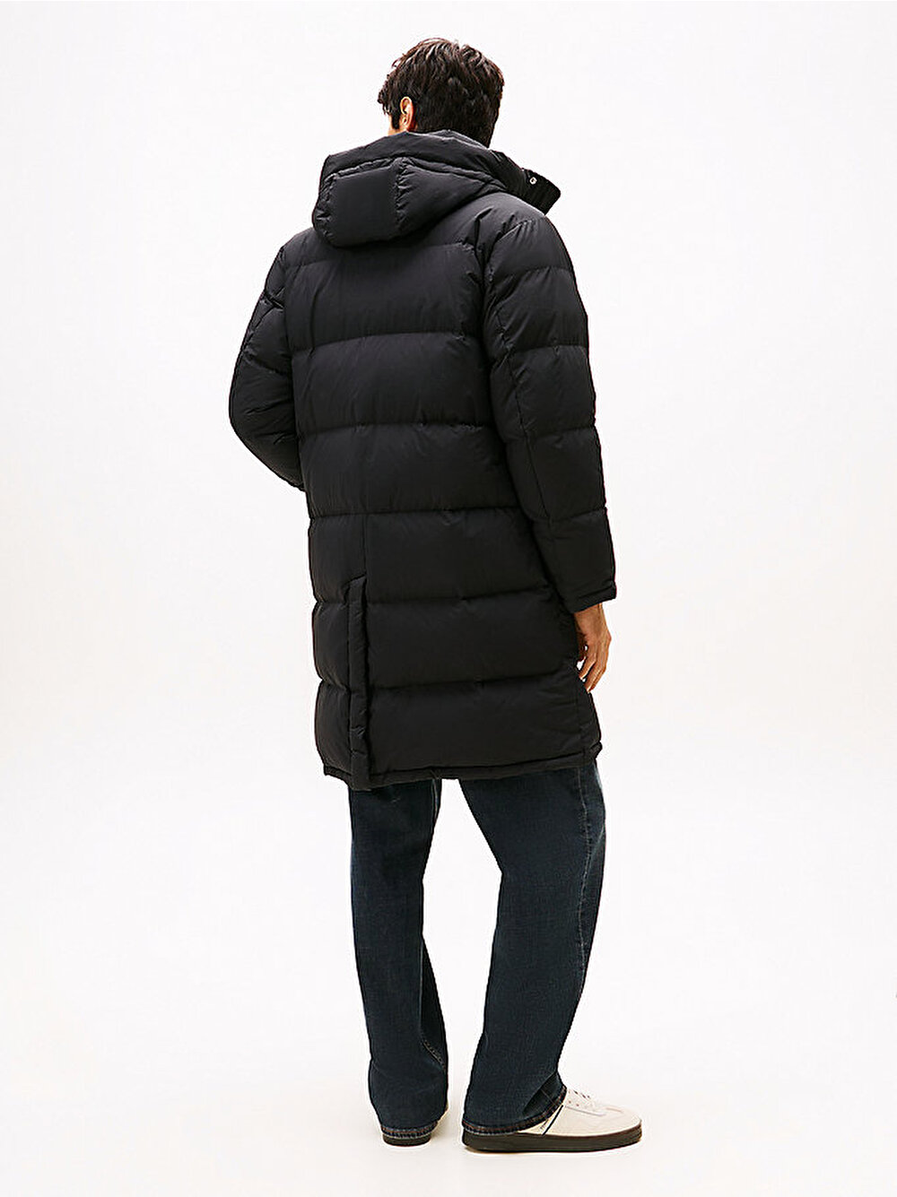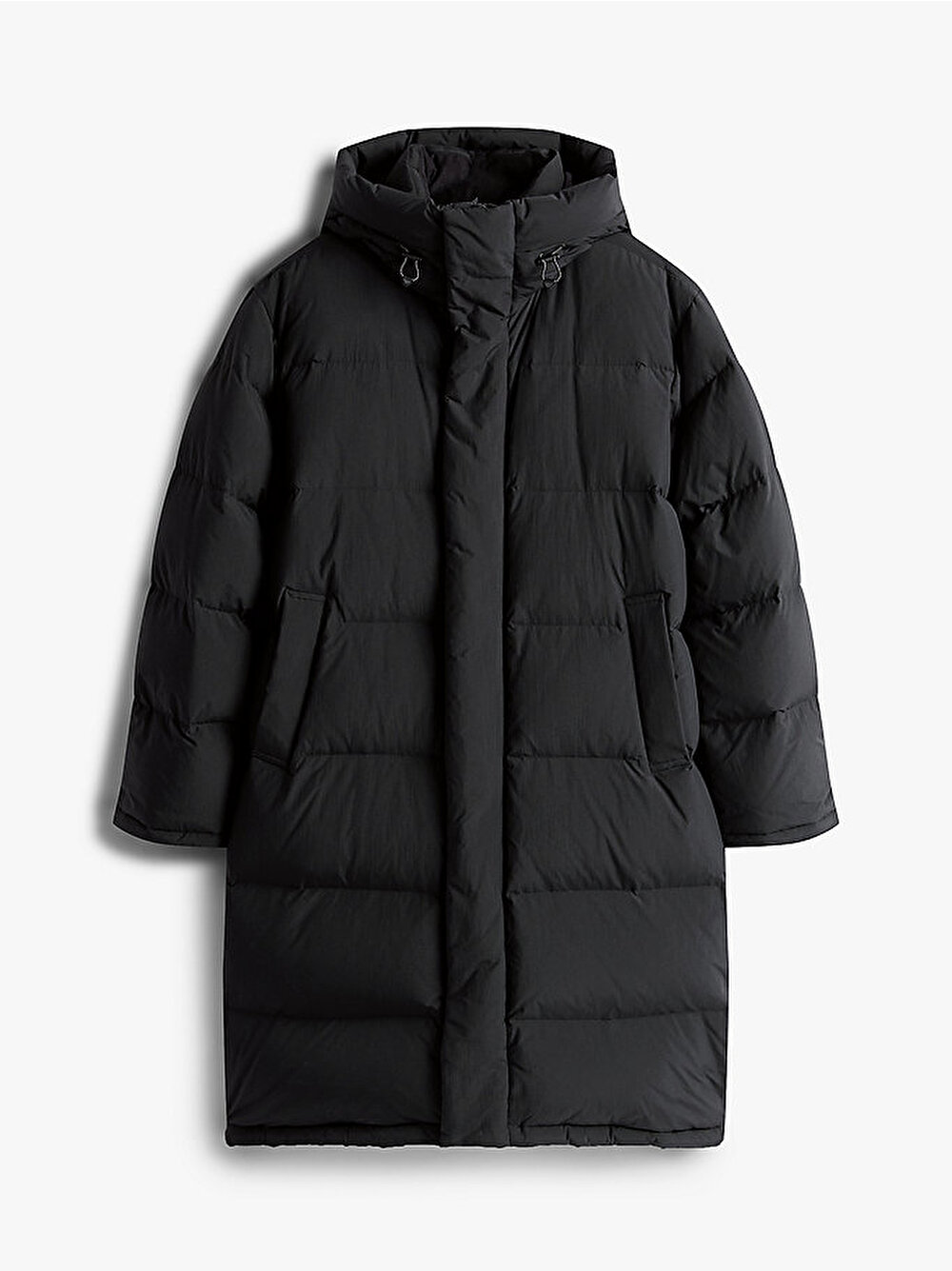 Hava koşullarından en iyi şekilde korunmak için bu kapüşonlu şişme mont rüzgar geçirmez, suya dayanıklı ve lüks yalıtımlı kaz tüyü dolguludur.