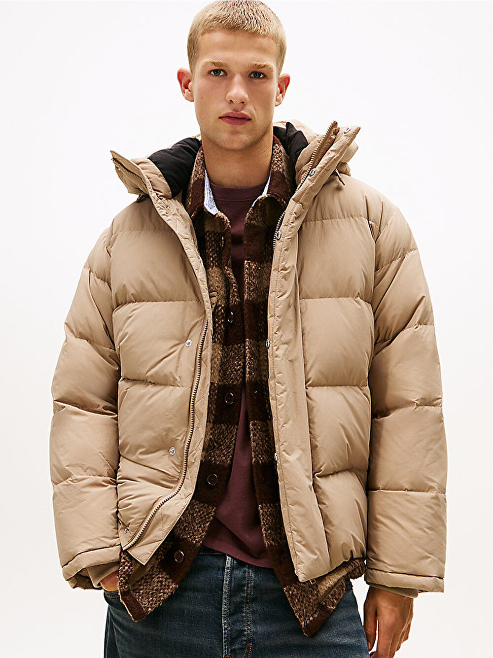 En soğuk havalar için ideal olan bu kaz tüyü dolgulu şişme mont, suya ve rüzgâra dayanıklı dış yüzeye sahiptir ve kapüşon ile tamamlanmıştır.