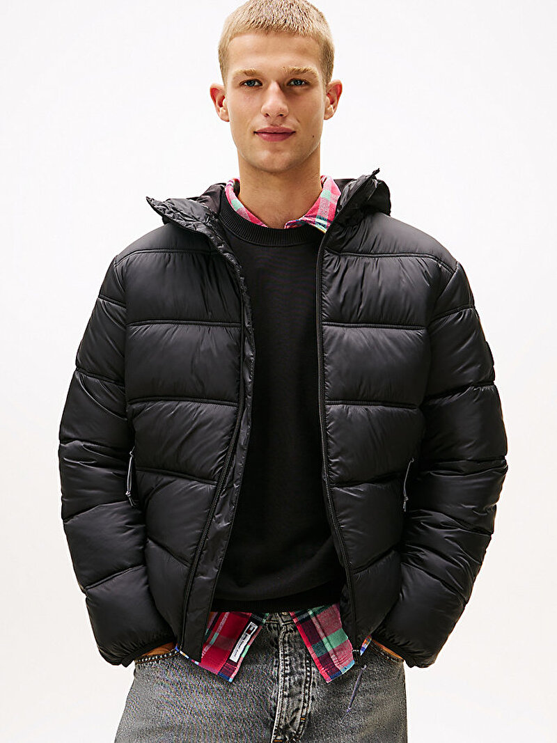 erkek tjm hooded logo puffer mont