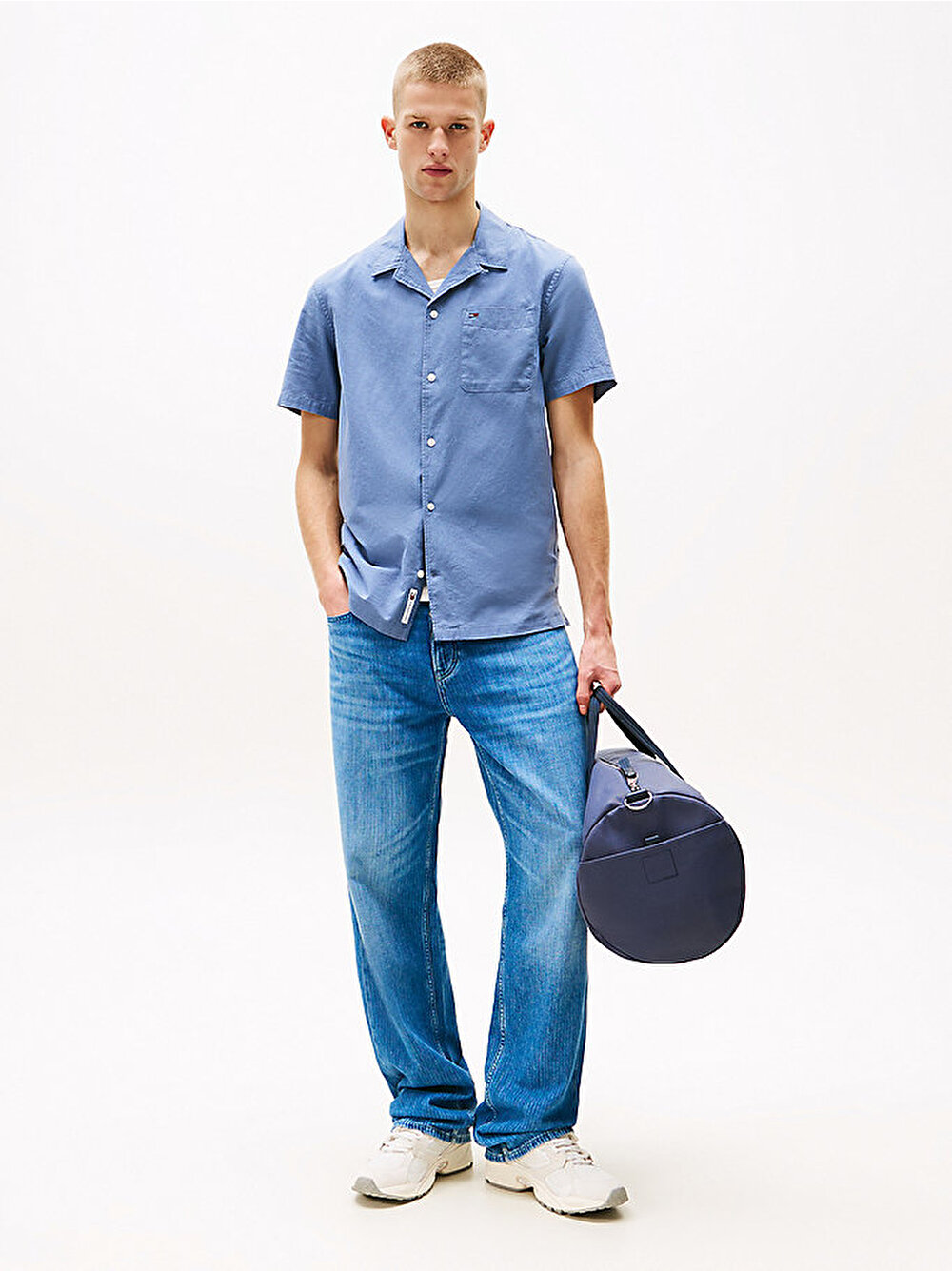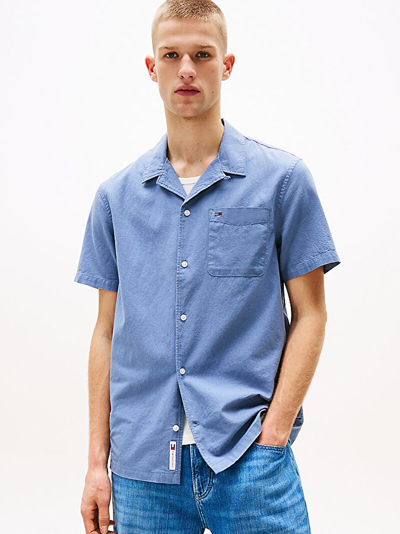 Havadar pamuk-keten karışımından üretilen ve kamp yakasıyla retro bir hava sunan bu kısa kollu gömlek, yaz tatilinin enerjisini yansıtın.