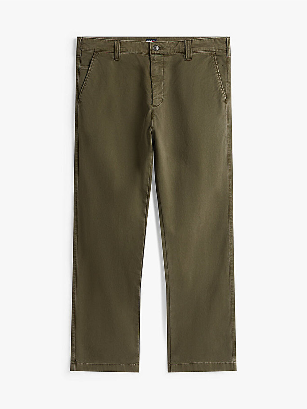 Esnek şeftali apreli pamuklu dimi kumaştan kesilmiş, kolay regular fit kesimli bu chino pantolon, gardırobunuzun vazgeçilmez parçası olacak şekilde tasarlanmıştır.