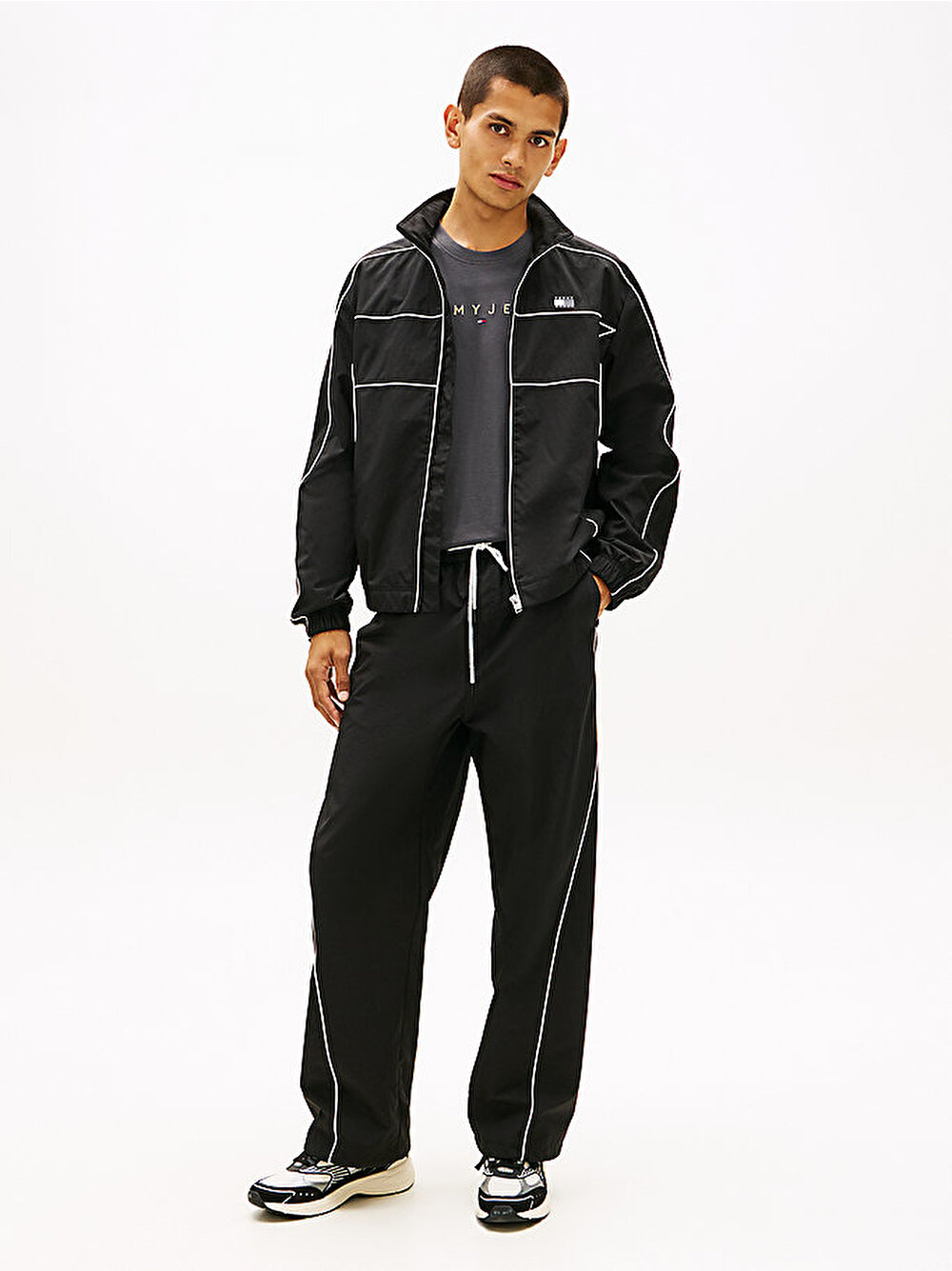 Suya ve rüzgâra dayanıklı kumaştan üretilen bu fermuarlı ceket, arka kısmındaki logo ve kontrast biyeleriyle dinamik bir görünüm kazandırır.