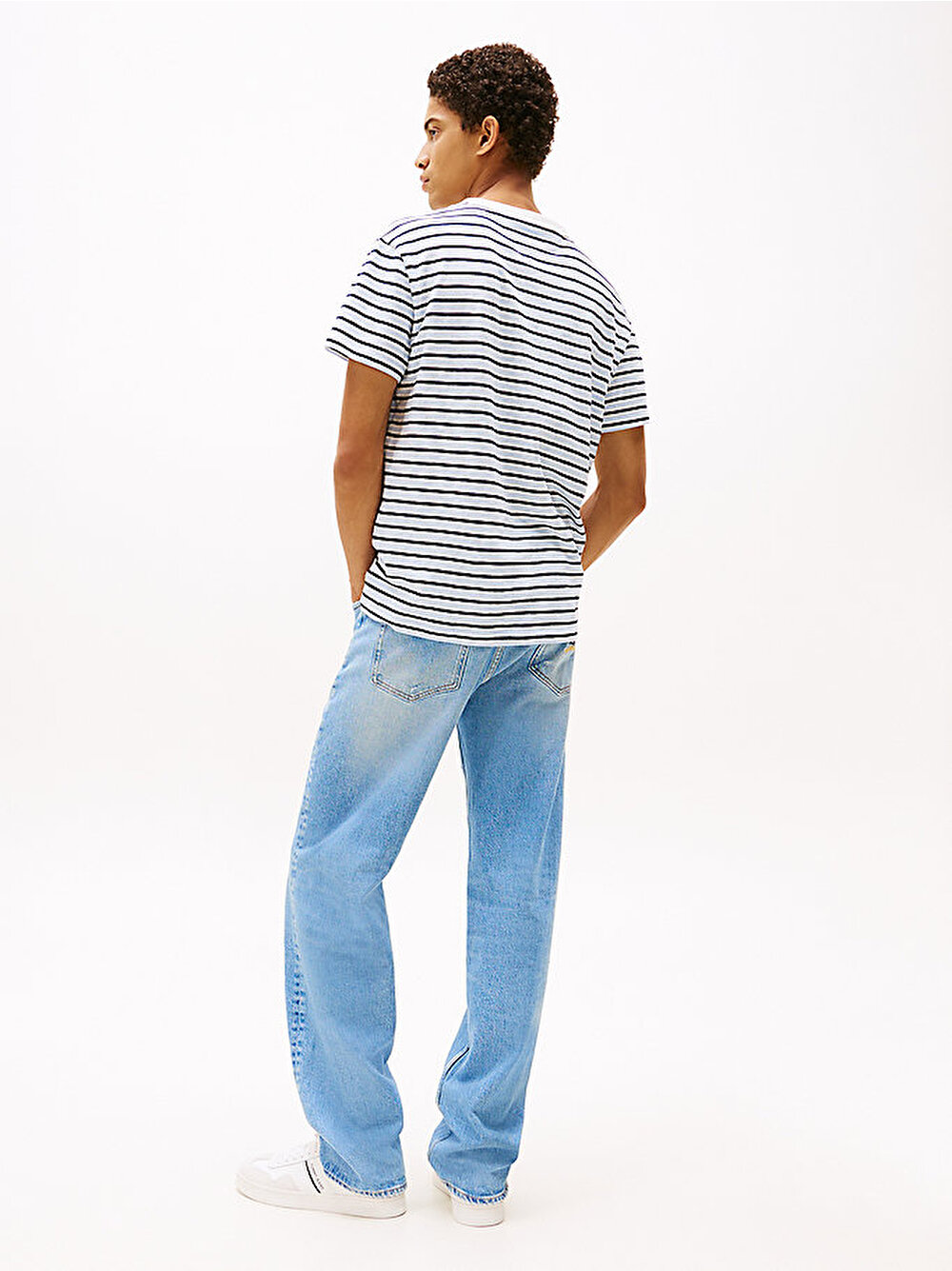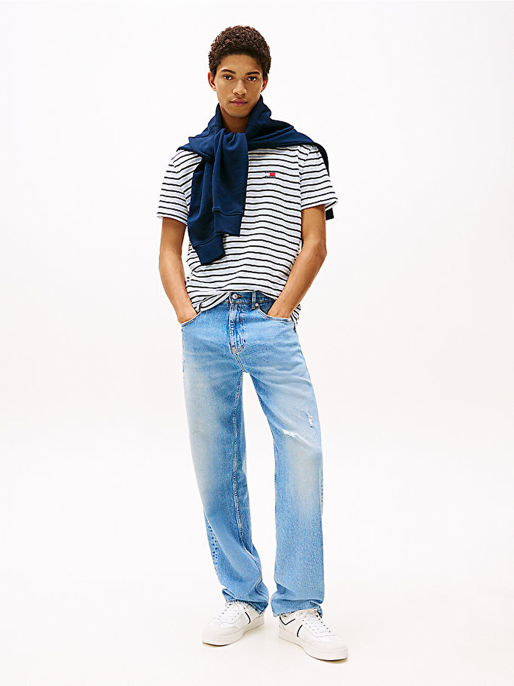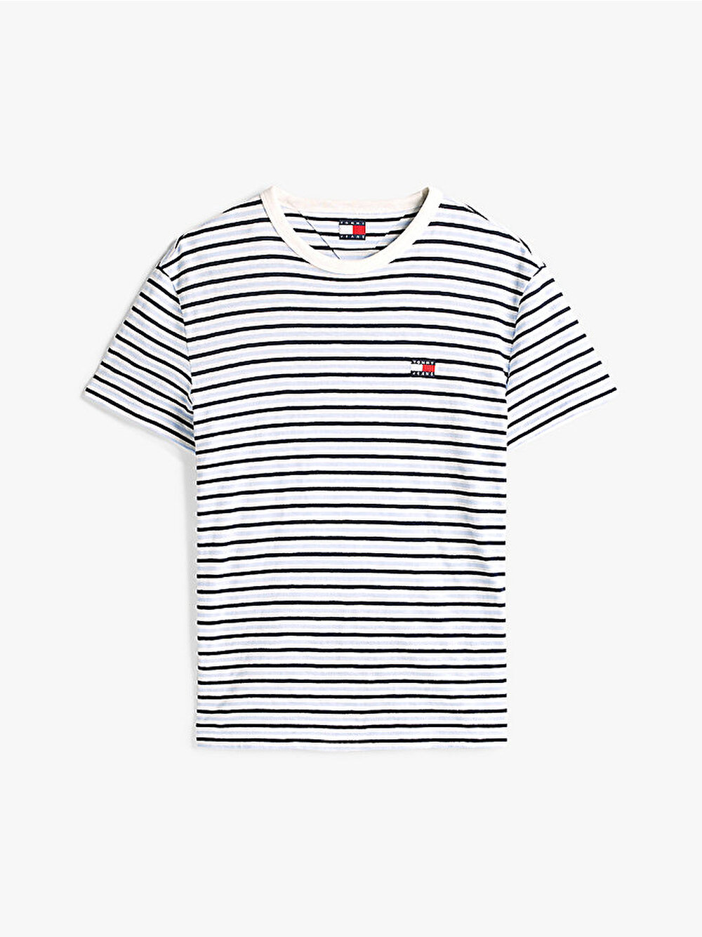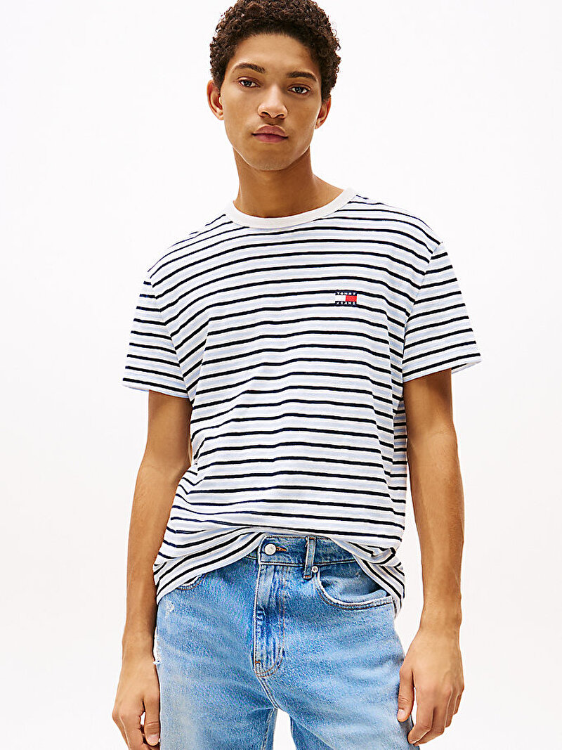 Kontrast yaka ve parlak renkli Tommy rozetiyle bu bisiklet yaka tişört, gardırobunuzun yeni temel parçası olmaya aday.
