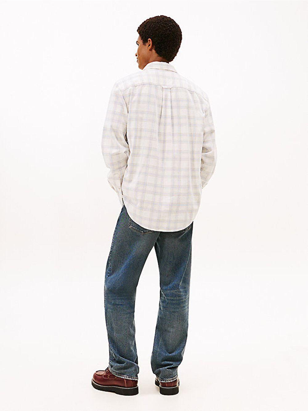 İnce kadife dokusu, bu saf pamuk gömleğin klasik Galler Prensi ekose tasarımına dokunsal bir unsur ekliyor.