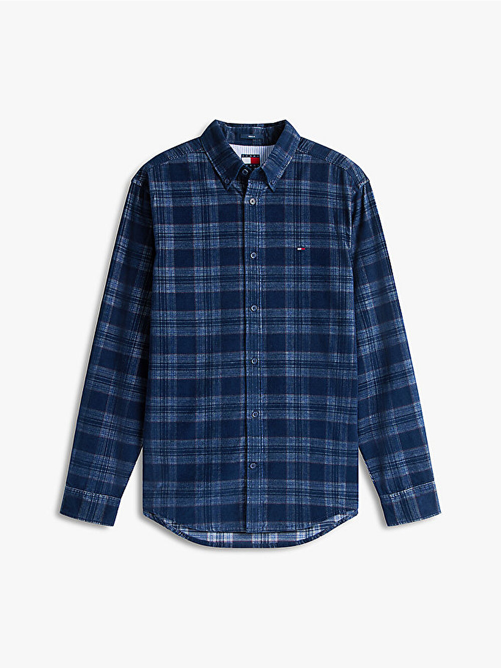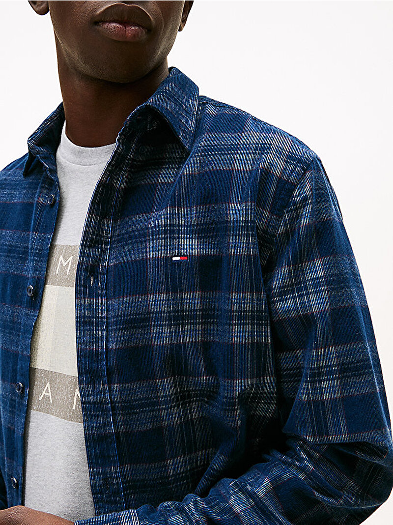 İnce kadife dokusu, bu saf pamuk gömleğin klasik Galler Prensi ekose tasarımına dokunsal bir unsur ekliyor.