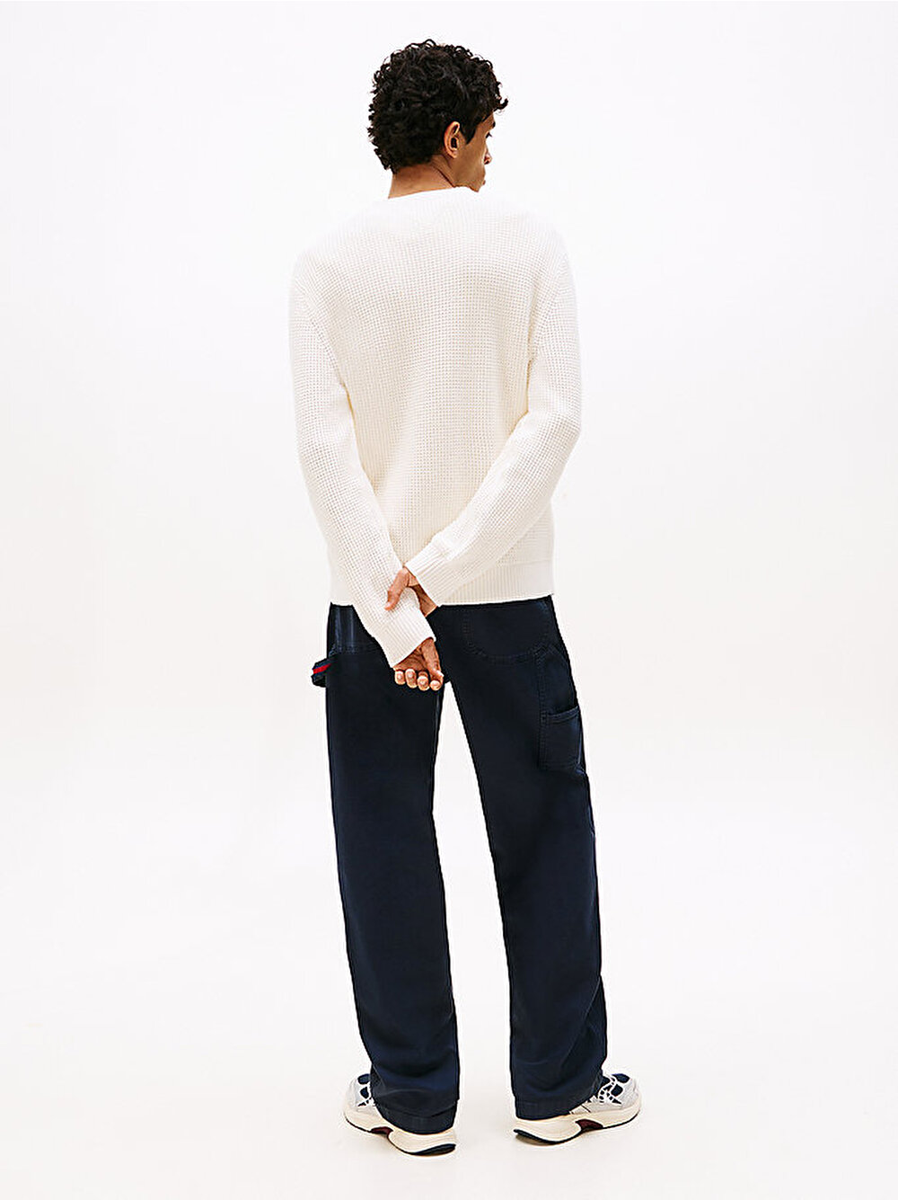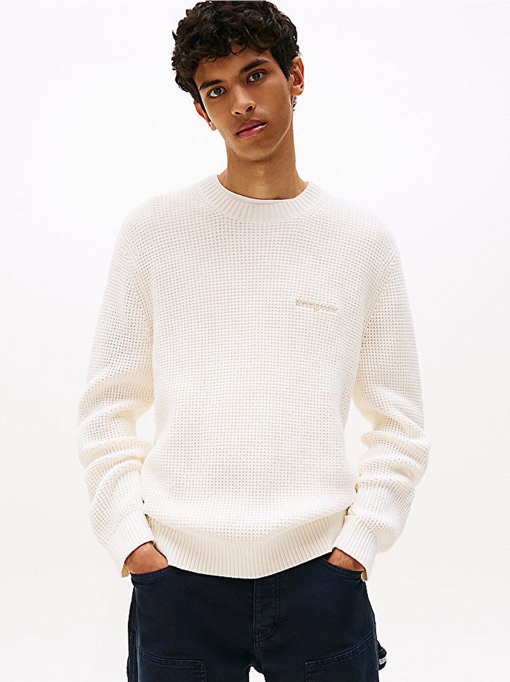 Kalın örgü tasarımı ve tonal logolu nakışıyla bu saf pamuk kazak, lüks dokulara odaklanan sofistike bir görünüme sahiptir.