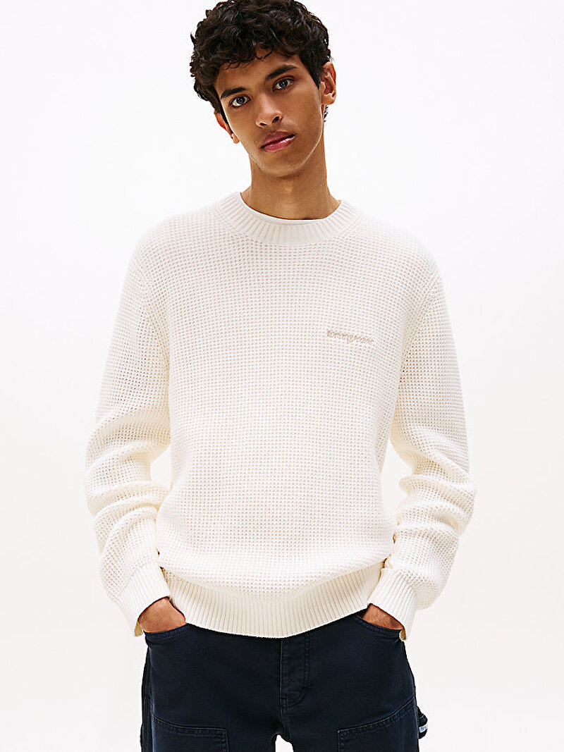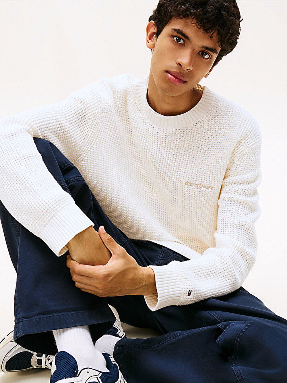 • Göğüs üzerinde tonal Tommy Jeans serif yazı logolu nakış