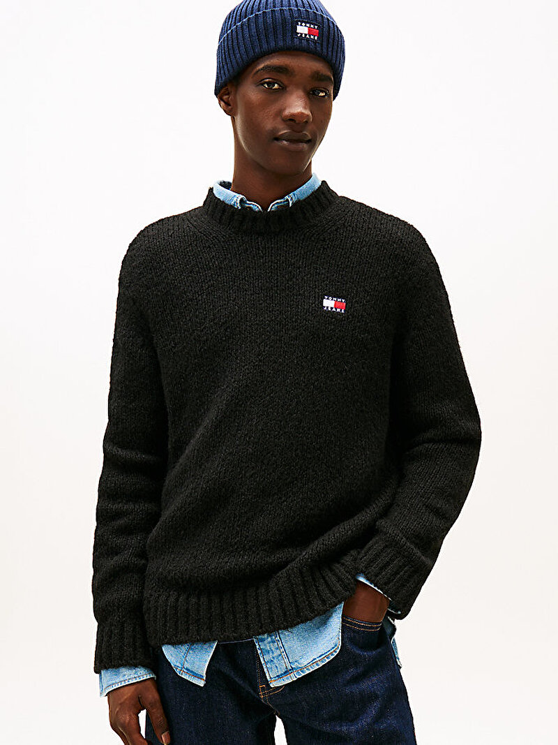 Göğüsteki Tommy arması ve sıcak dokulu alpaka yünü karışımlı örgüsüyle bu kazak, özgün bir stil ve sıcacık bir his sunar.