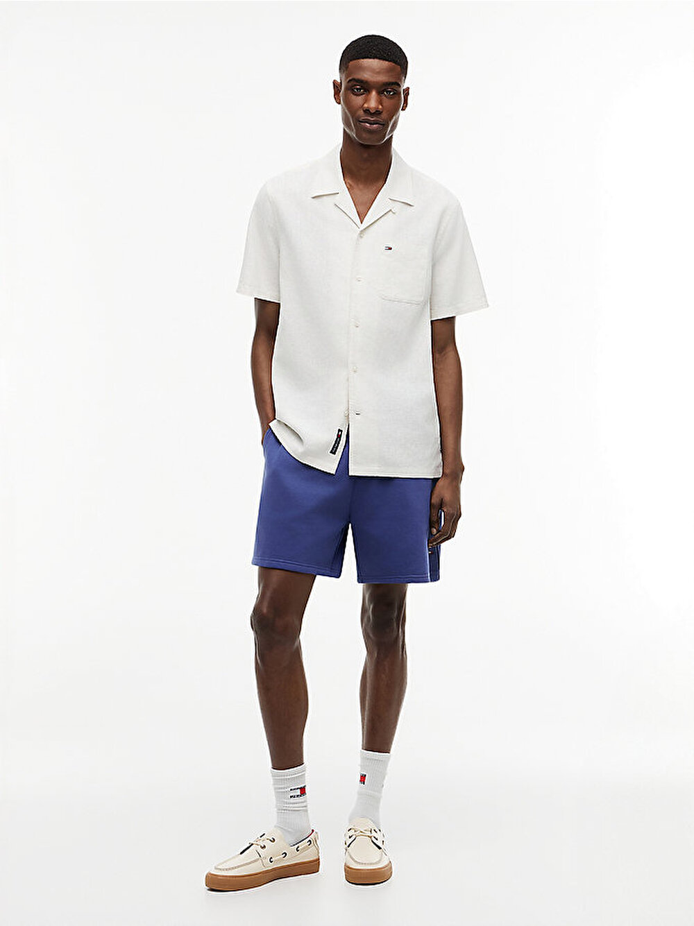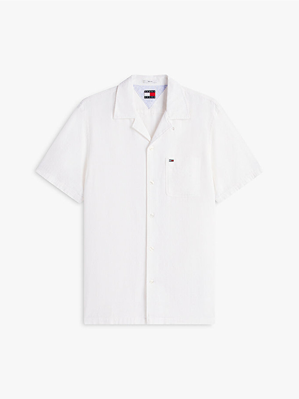 - Rahat kesimi, konforlu kamp yakası ve serin tutan keten-pamuk karışımlı kumaşıyla bu kısa kollu gömlek tatil enerjisi yayıyor.