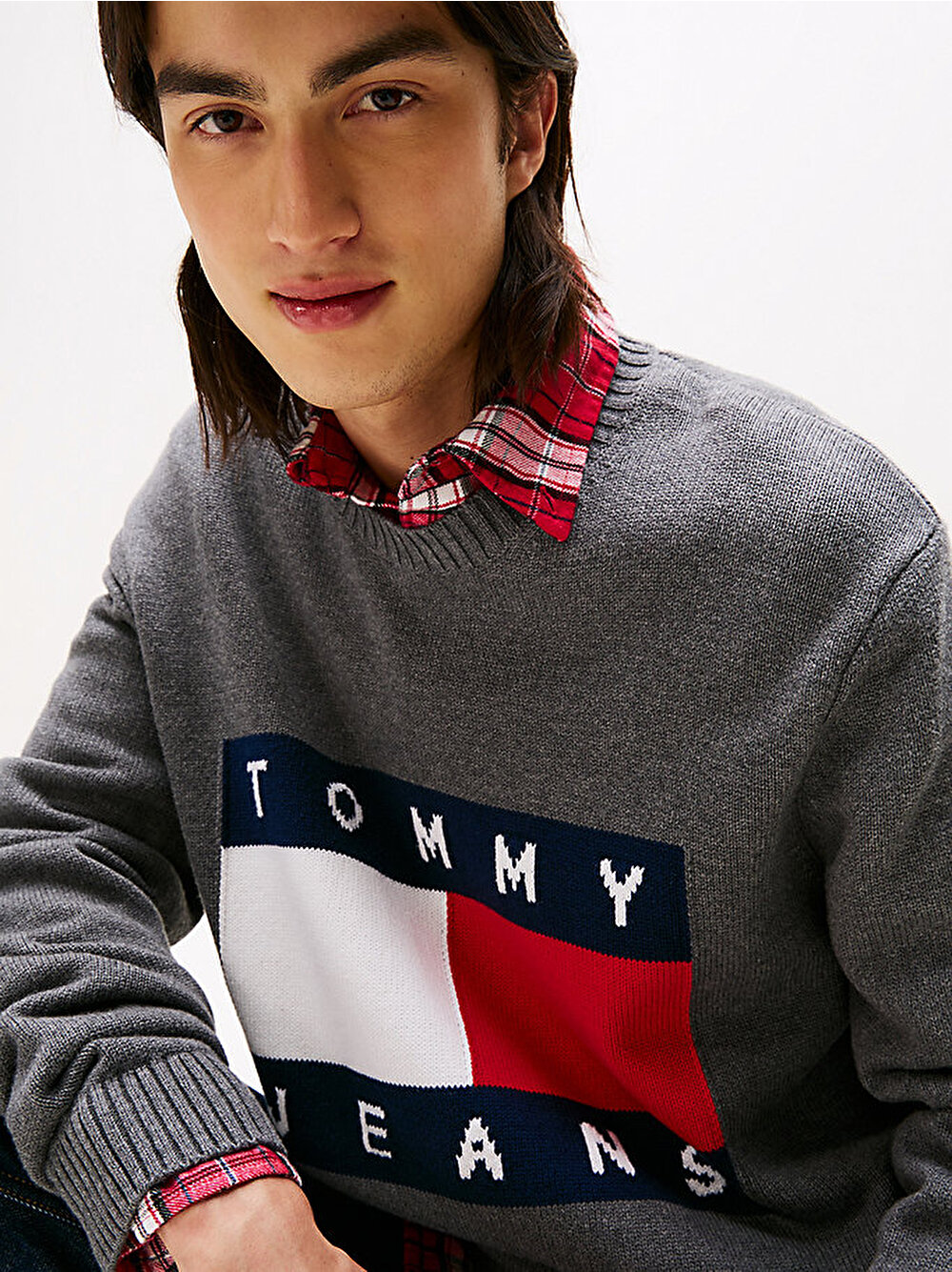 • Göğüste Intarsia Tommy bayrağı rozeti