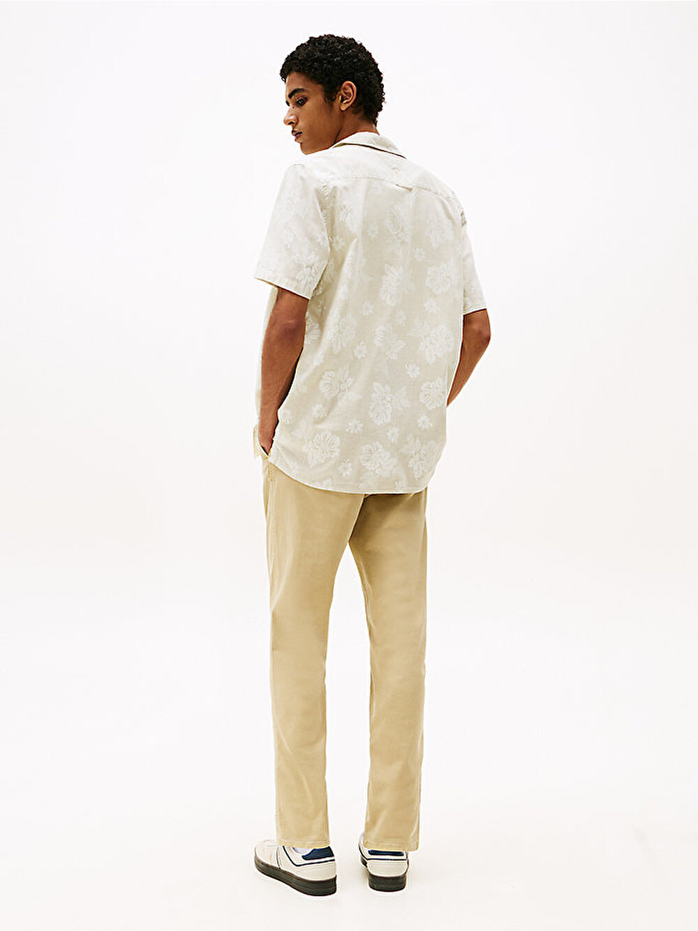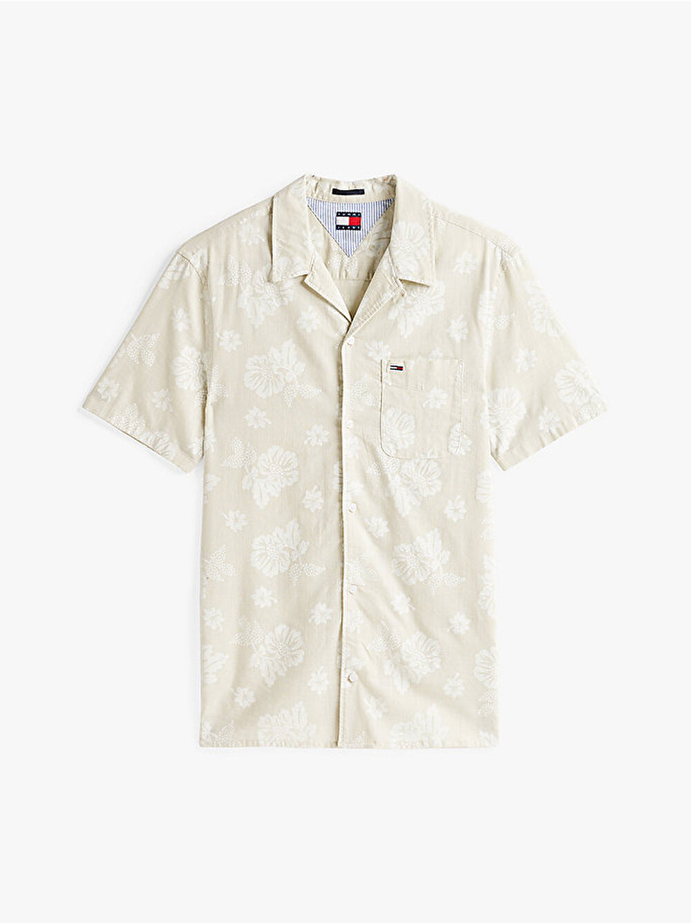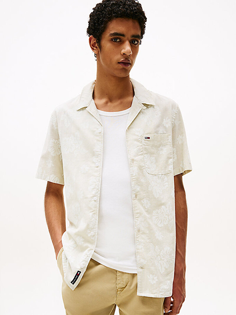 Şantuklu pamuktan üretilen ve cep üzerinde markalama bulunan bu çiçek desenli kısa kollu gömlek ile yerel plaj barını keşfedin.