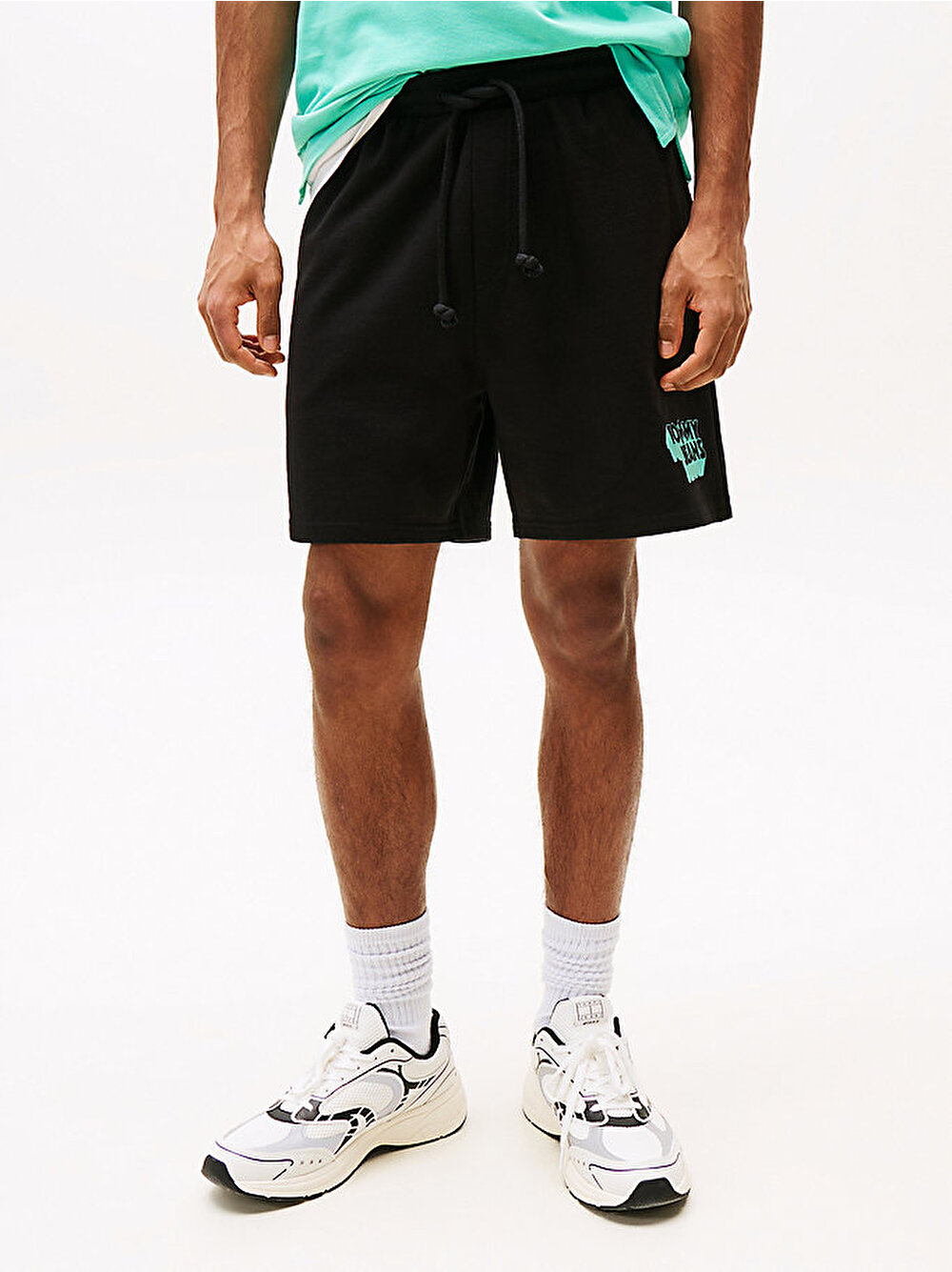 Rahat kesimi, lastikli beli ve cesur yığın logosuyla öne çıkan bu pamuklu şortla rahatça arkanıza yaslanın.