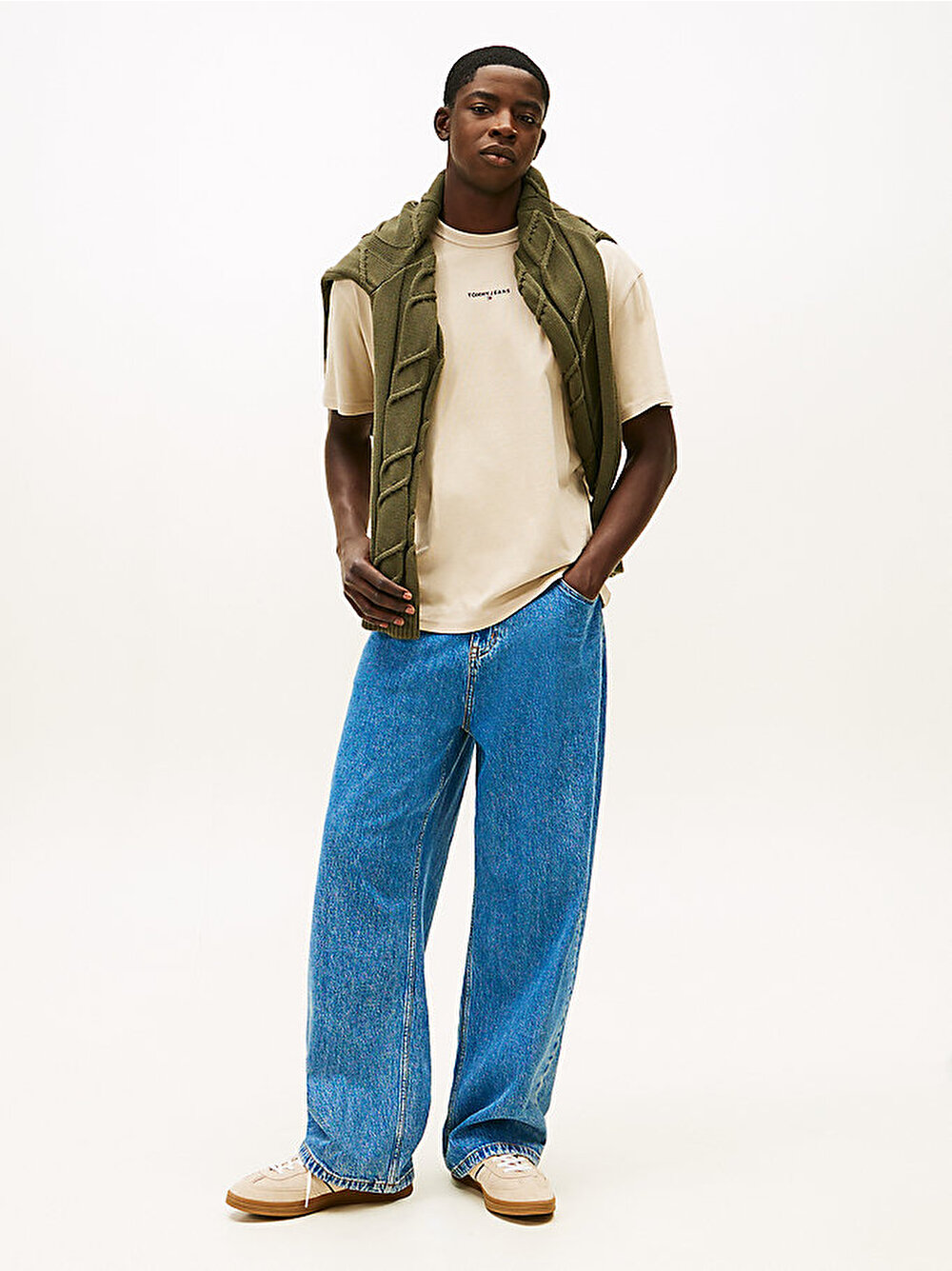 erkek tjm relax linear logo t-shirt